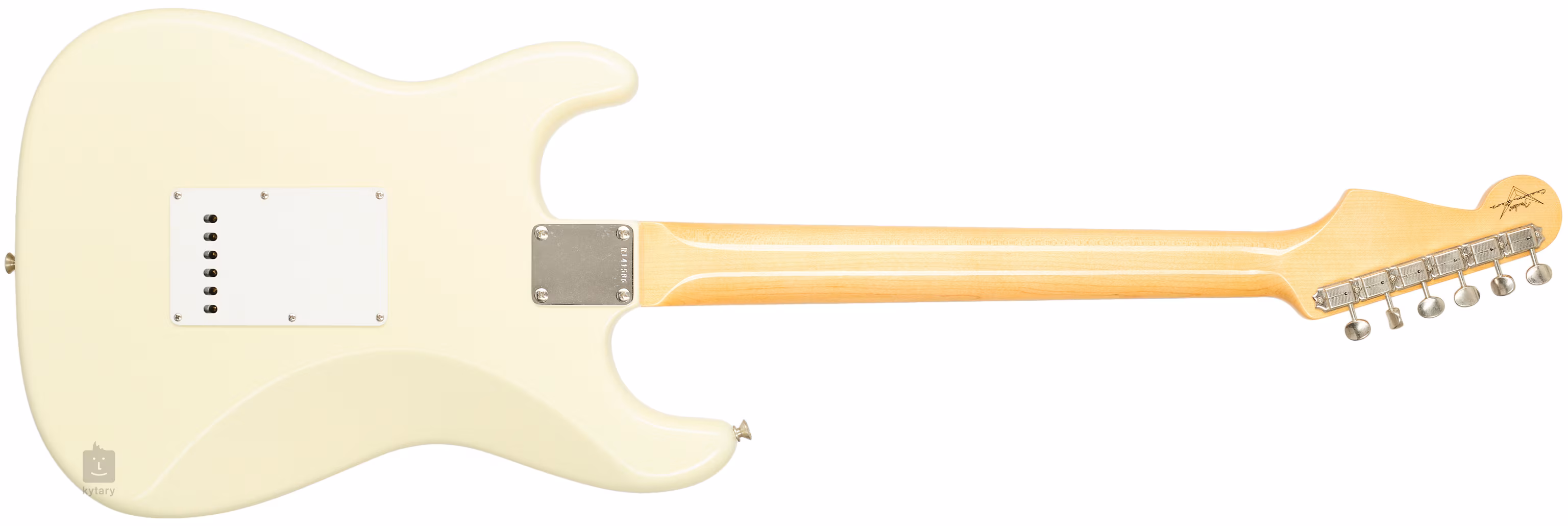K javorovému krku (řez rift sawn) je přilepen 9 mm silný palisandrový hmatník kvality AAA osazený jednadvaceti pražci velikosti Medium Vintage (47095). Orientaci na hmatníku usnadňují poziční tečky brandované jako “vintage clay”. Autentičnost nástroje podtrhují tři ručně vinuté 1959 Strat single-coil snímače, vintage '59 - '60 ovladače a elektronika, synchronizované Strat tremolo, ladicí mechaniky ve vintage stylu a nultý pražec z kosti.