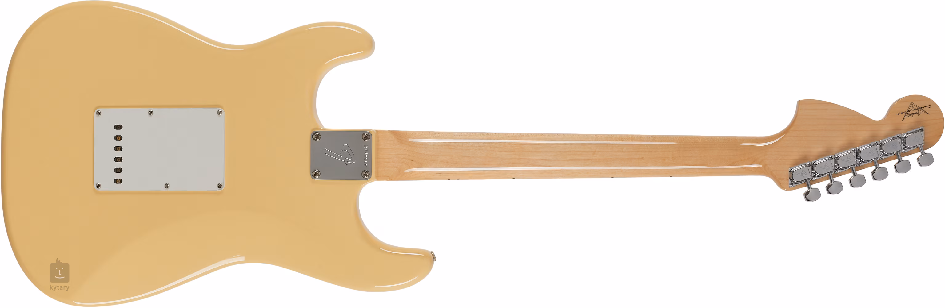 Tělo kytary Yngwie Malmsteen Signature Stratocaster, Scalloped Maple Fingerboard, Vintage White je zhotoveno ze dvou kusů olše. NOS (New Old Stock) finiš nanesený na základní vrstvu (WLS undercoat) a barevná úprava Vintage White poskytují kytaře autentický vzhled osmdesátkového originálu bez umělé patiny a projevů stárnutí v podobě vybledlého laku. Samozřejmostí je rychlý "Custom C" profil krku a hmatník s vybraným dřevem mezi pražci (scalloped fingerboard) pro snazší rychlou hru a vytahování tónu (bending).