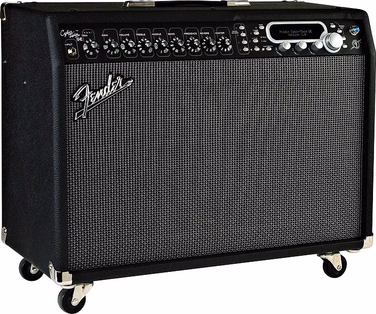 Firma Fender může být právem pyšná na tento dvoukanálový model Cyber-Twin SE. Kombo je osazeno dvěma 12" (8 ohmů) Celestion reproduktory z řady G12T-100/1887 a dvěma lampami z řady 12AX7WA, umístěných v předzesilovači, což dává tomuto apárátu opravdu silný a zároveň čistý zvuk. Fender Cyber Twin je digitálně ovládané 130W (2x 12") kytarové kombo, schopné analogově simulovat zvuky vintage aparátů, obsahující řadu efektů (analogový i digitální delay, modulace, filtry, reverb) a interní ladičku s funkci mute. Přijďte k nám na prodejnu tento originální model vyzkoušet, opravdu to stojí za to.