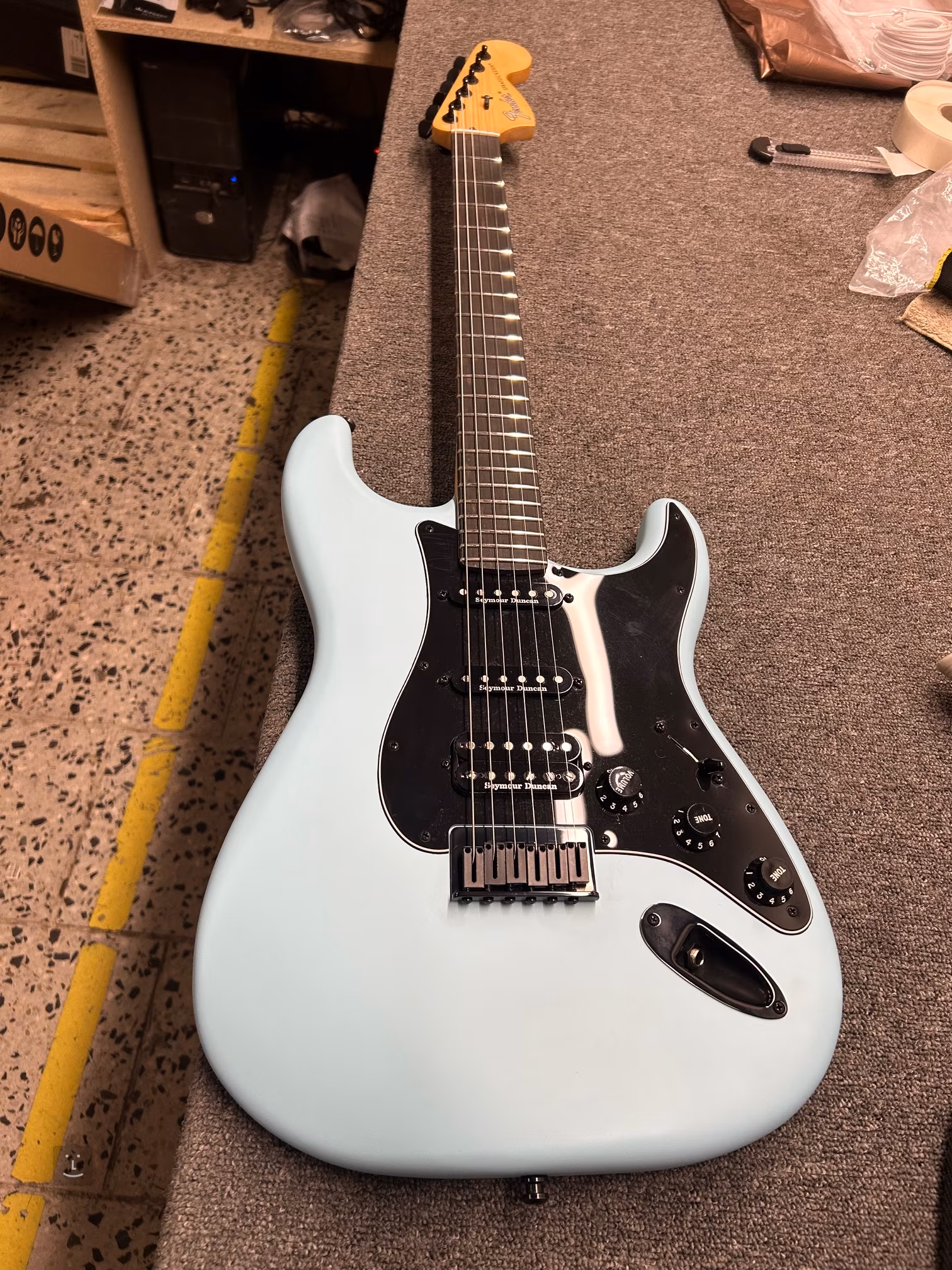 DE Player II Advanced Stratocaster HSS Daphne Blue z limitované edice značky představuje současnou interpretaci klasického Stratocaster designu. Olšové tělo kytary kryje saténový polyesterový lak a barevná úprava Daphne Blue. K přišroubovanému javorovému krku s pohodlným “Modern C” profilem je přilepen ebenový hmatník se zaoblenými hranami osazený dvaadvaceti pražci velikosti Jumbo.