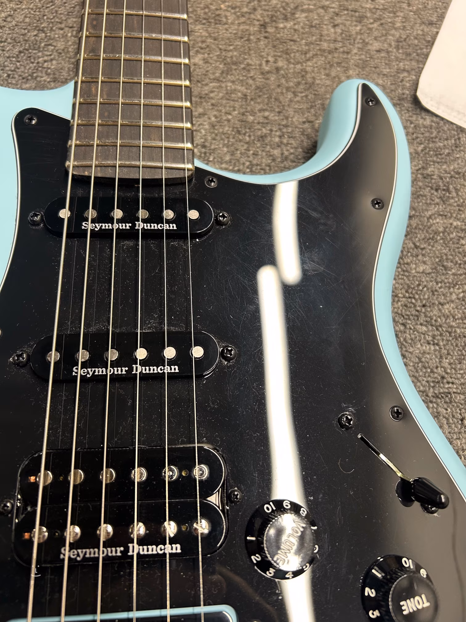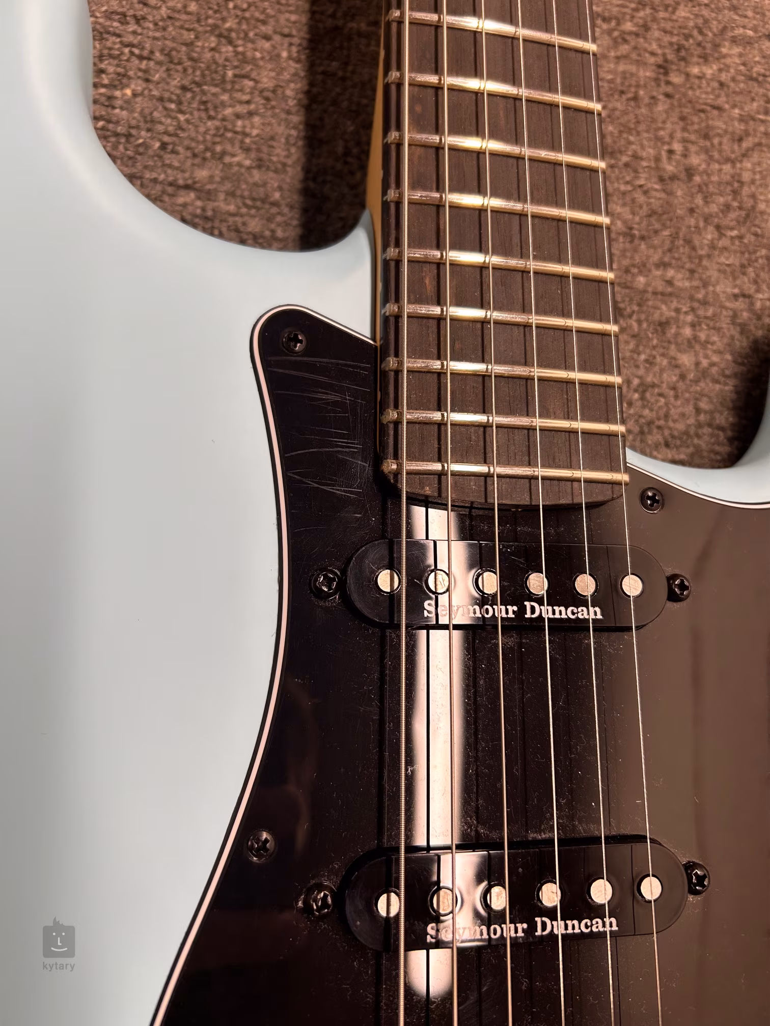 Kombinace kobylkového “hot” humbuckeru Seymour Duncan JB se silným výstupem a dvou Custom Flat Strat single-coilů “na steroidech”, tj. s větším vinutím, poskytuje kytaře jak plný šťavnatý zvuk po hru rychlých sól i řádně zatěžkaných kytarových riffů, tak i žhavý Strat single-coil zvuk. Jeho kontury upravíte pomocí standardních ovladačů. Stabilní ladění a rychlou výměnu strun zaručuje uchycení ve firemních uzamykatelných mechanikách a ve string-through kobylce s ocelovými sedly. Stylové zpracování podtrhuje černý třívrstvý pickguard a černý hardware.