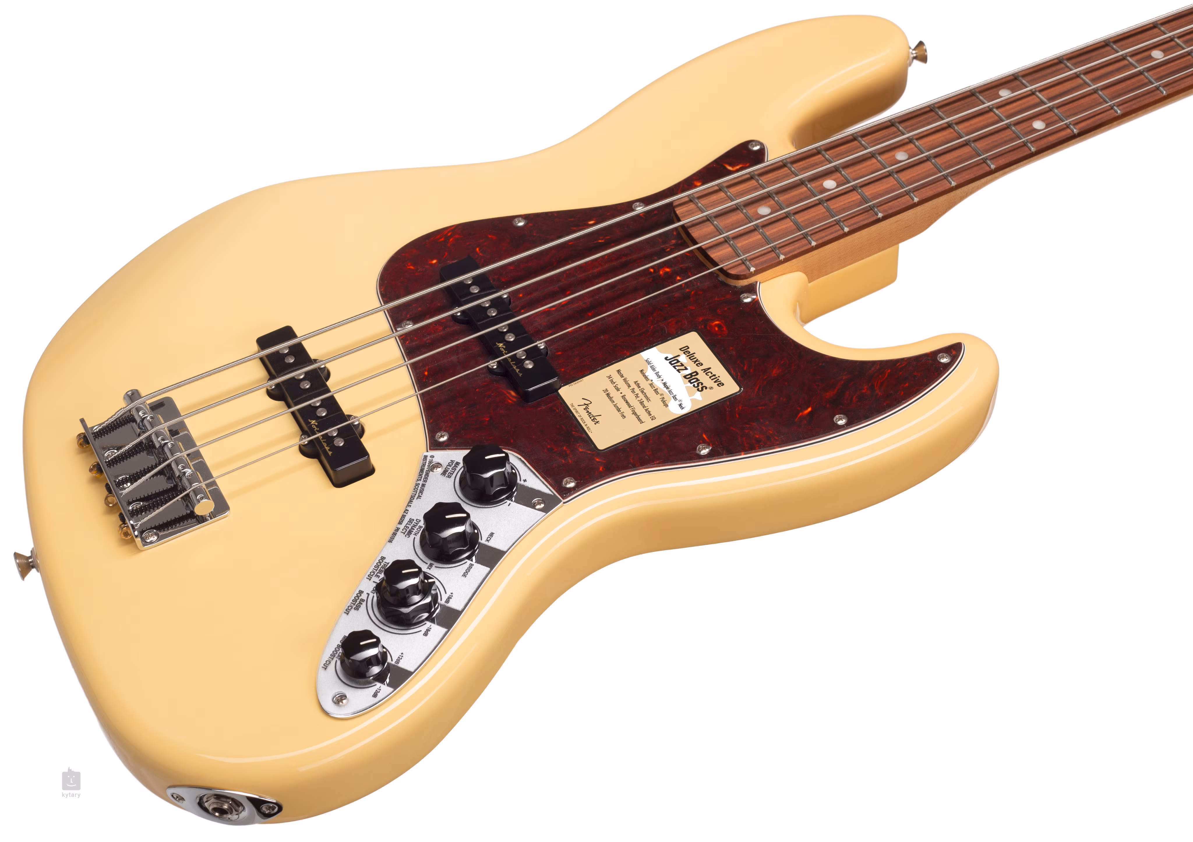 Deluxe Active Jazz Bass je navržena tak, aby její design a zároveň také zvukové možnosti uchvátily i velké hráče. Klasický a dnes velmi moderní vzhled Vám nabízí tělo z masivní olše, komfortní javorový krk ve tvaru C s palisandrovým hmatníkem a čtyřvrstvý hnědý perleťový pickguard, který dodává kytaře luxusní vzhled. Dva dvoucívkové keramické Noiseless™ snímače a v Americe vyrobený třípásmový aktivní ekvalizér (basy, středy, výšky ) dodávají baskytaře plný a mohutný zvuk s jistou dynamikou, kterou si určitě zamilujete.
