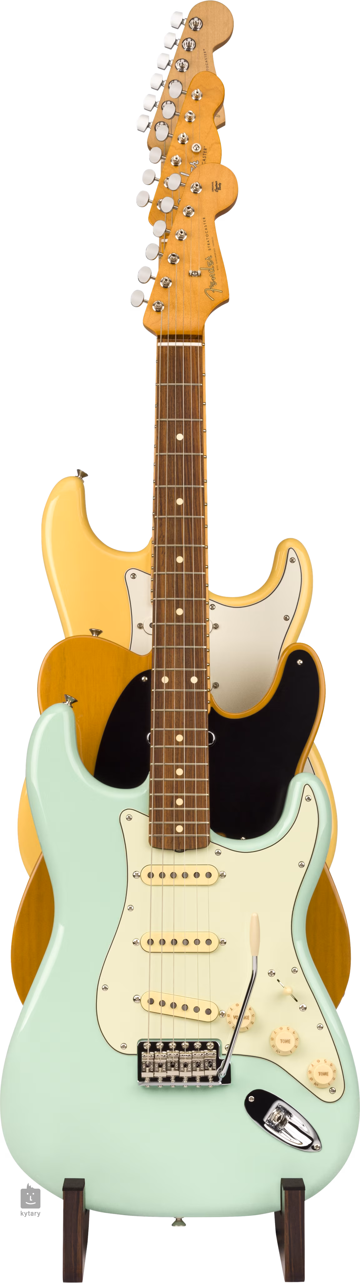 Stojan na kytaru Fender Deluxe Wooden 3-Tier Multi Stand přináší oku lahodící design v duchu padesátých let. Jeho konstrukce byla navržena s důrazem na stabilitu, což zajišťuje nejen elegantní vzhled, ale i bezpečné uložení vašich nástrojům. Stojan má elegantní povrch v barvě ořechu a držák sám je vybaven odolným protiskluzovým polstrováním, které chrání povrch krku nástroje. Díky své konstrukci je vhodný pro pro tři elektrické kytary nebo baskytary