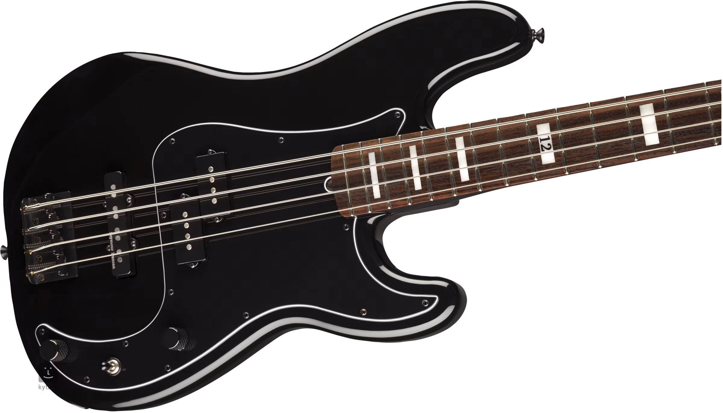 Baskytara je ideální pro rockové nadšence, proto je veškerý hardware vyroben z černého chromu. ladicí mechaniky Vintage-Style disponují na struně E technologií HISPHOT BASS XTENDER pro rychlé a přesné podladění z E na tón D. Na nástroj se v továrně natahují struny Fender 7250M, NPS (.045 - .105)