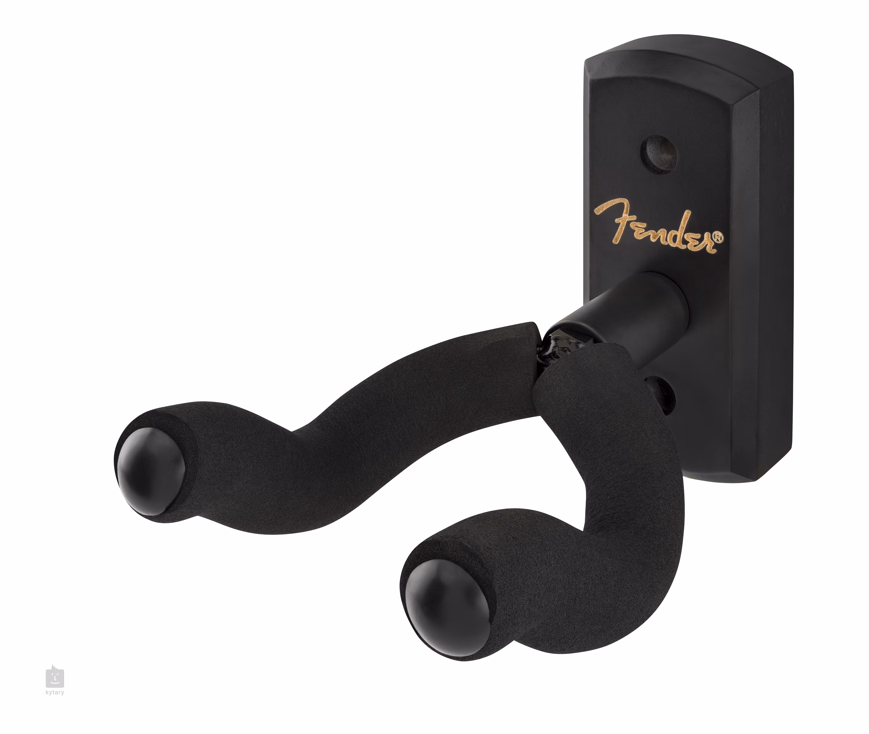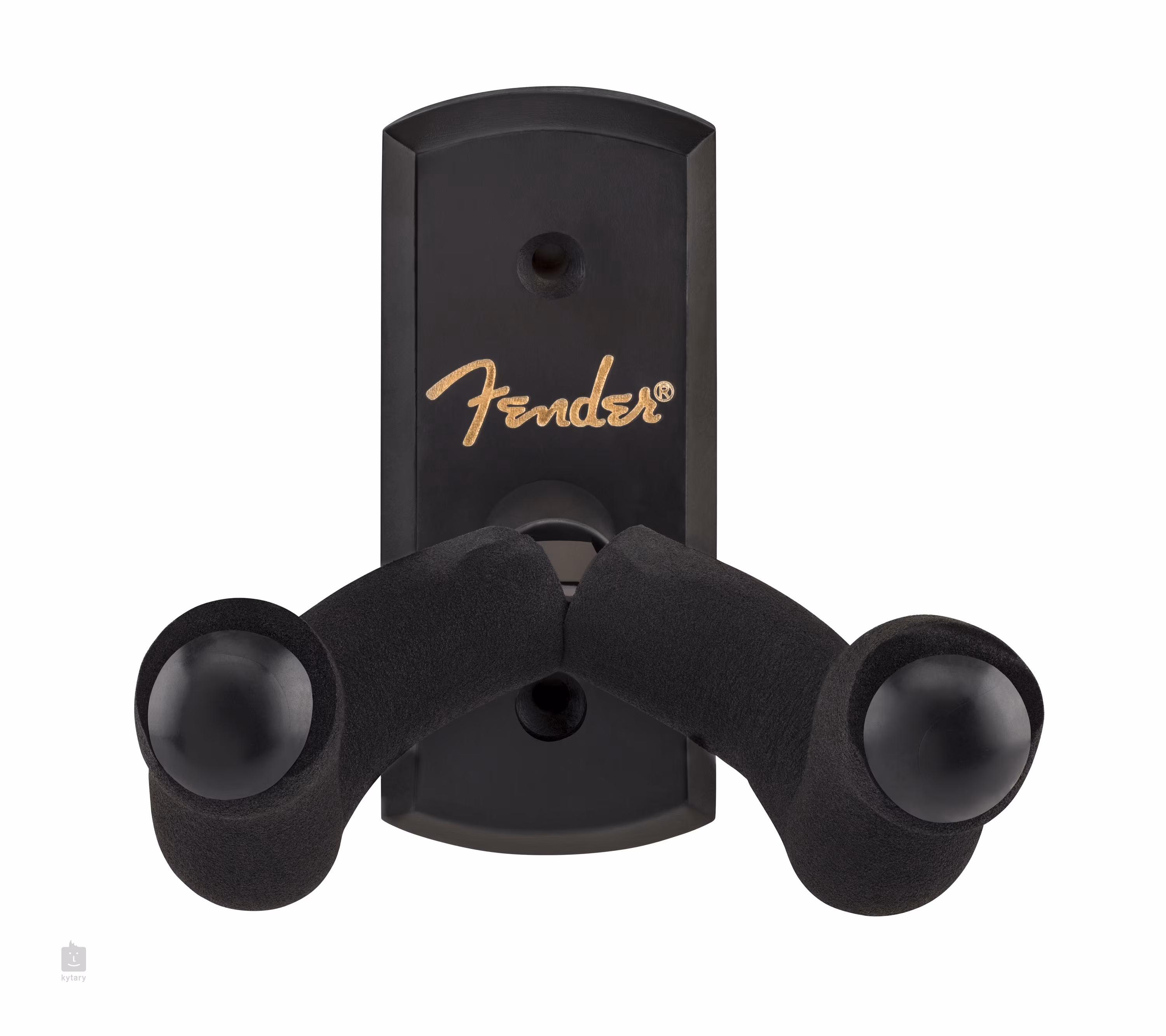 Kytarový věšák od společnosti Fender je určen pro bezpečné zavěšení většiny kytar a baskytar. Díky flexibilní otočné vidlici je schopen se přizpůsobit většině kytarových hlav, takže pojme i netradiční nástroje. Měkké pěnové polstrování v místech doteku s nástrojem se pak postará o spolehlivou ochranu proti oděrkám a škrábancům. Věšák jistě potěší také svým elegantním designem – jeho dřevěná základna je zdobena jemným gravírovaným logem Fender. Součástí balení je veškeré montážní příslušenství.