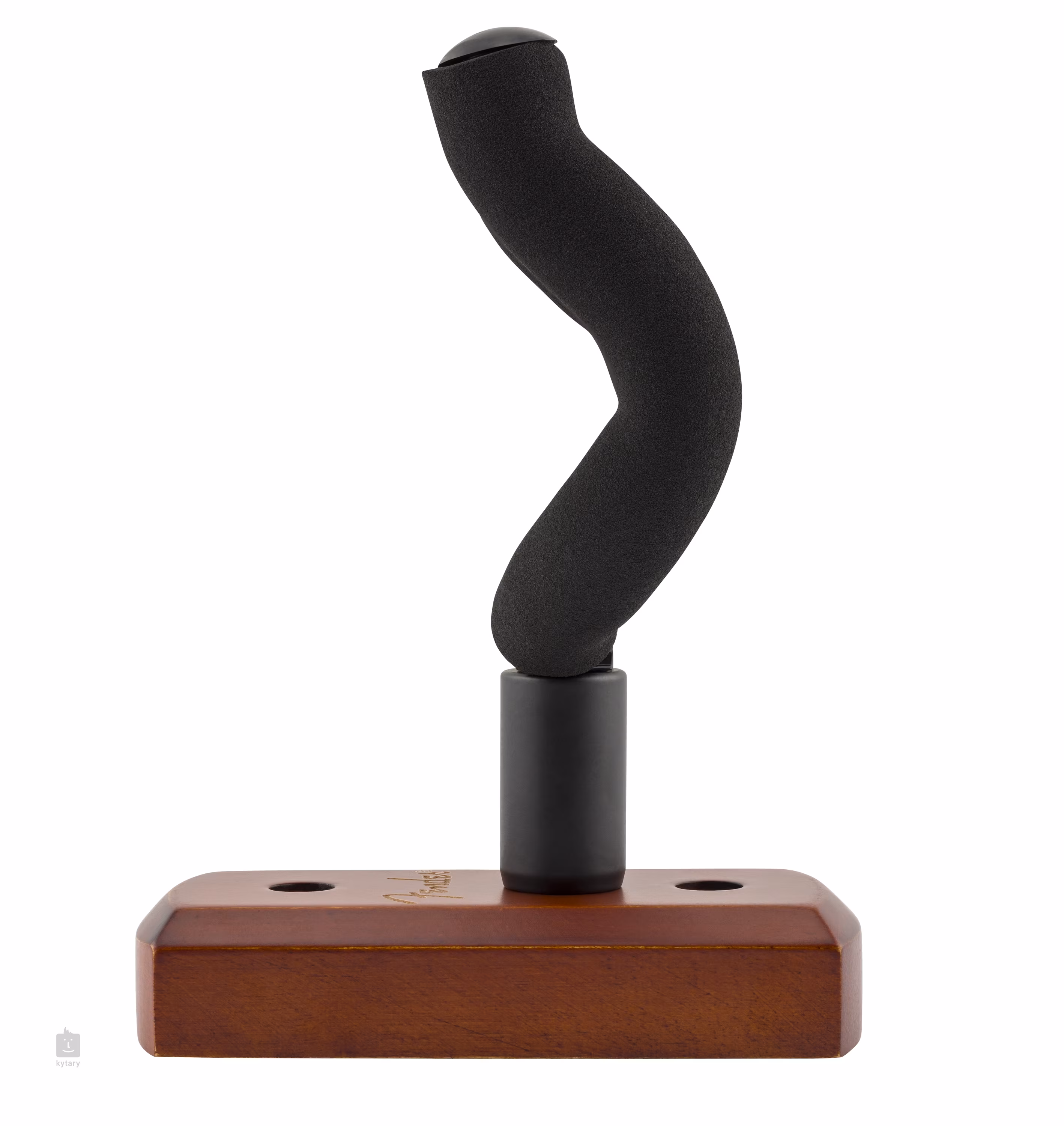 Kytarový věšák od společnosti Fender je určen pro bezpečné zavěšení většiny kytar a baskytar. Díky flexibilní otočné vidlici je schopen se přizpůsobit většině kytarových hlav, takže pojme i netradiční nástroje. Měkké pěnové polstrování v místech doteku s nástrojem se pak postará o spolehlivou ochranu proti oděrkám a škrábancům. Věšák jistě potěší také svým elegantním designem – jeho dřevěná základna je zdobena jemným gravírovaným logem Fender. Součástí balení je veškeré montážní příslušenství.