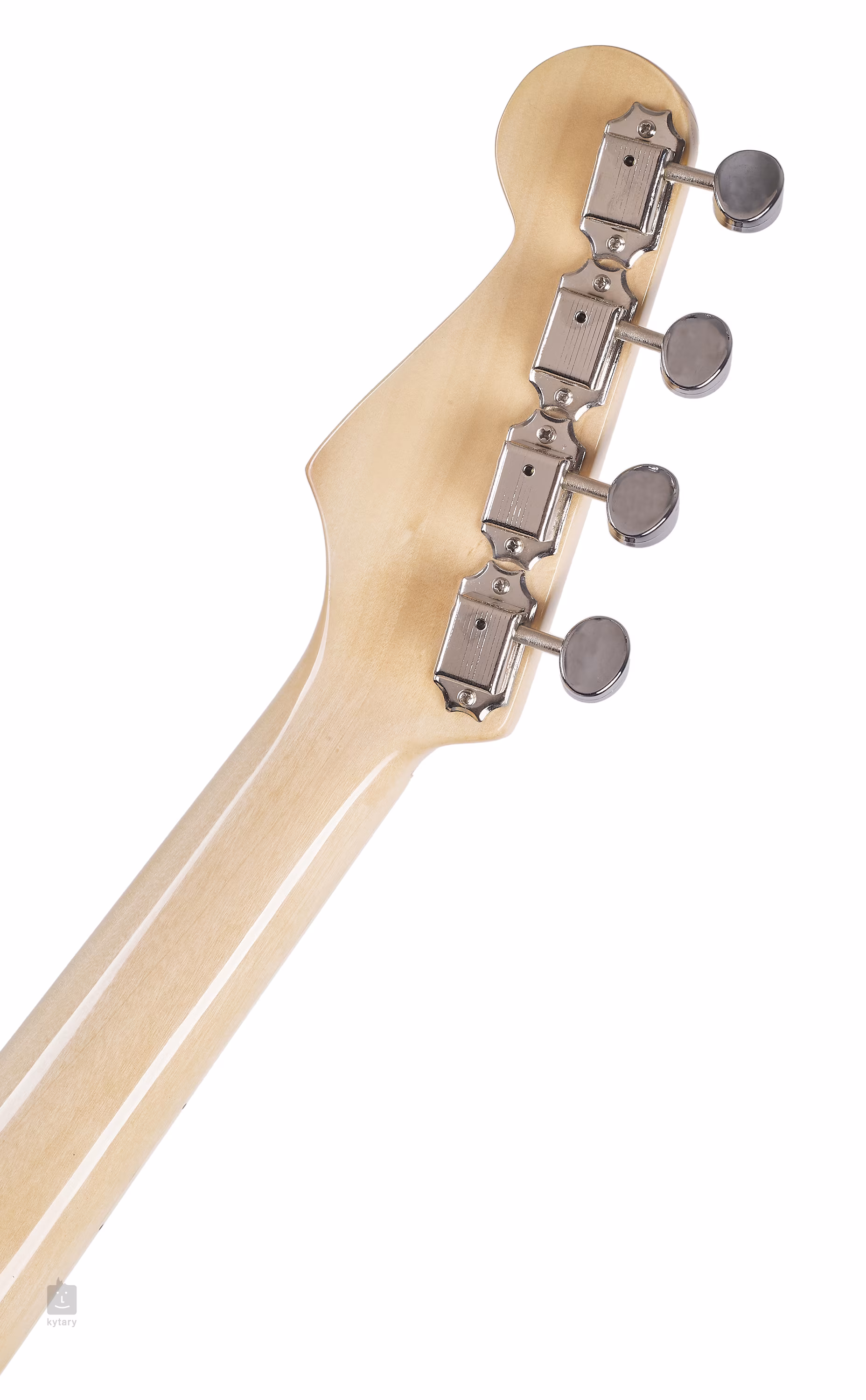 Samotné tělo nástroje je zhotoveno z přední laminované smrkové desky a zadní desky a lubů z mahagonu. K javorovému krku je přilepen ořechový hmatník osazený devatenácti pražci a bílými pozičními tečkami pro snazší orientaci. Struny jsou přes nultý pražec z umělé kosti ukotveny ve zmíněných niklových 4-in-line mechanikách v nezaměnitelném Fender designu a kobylce z ořechu.
