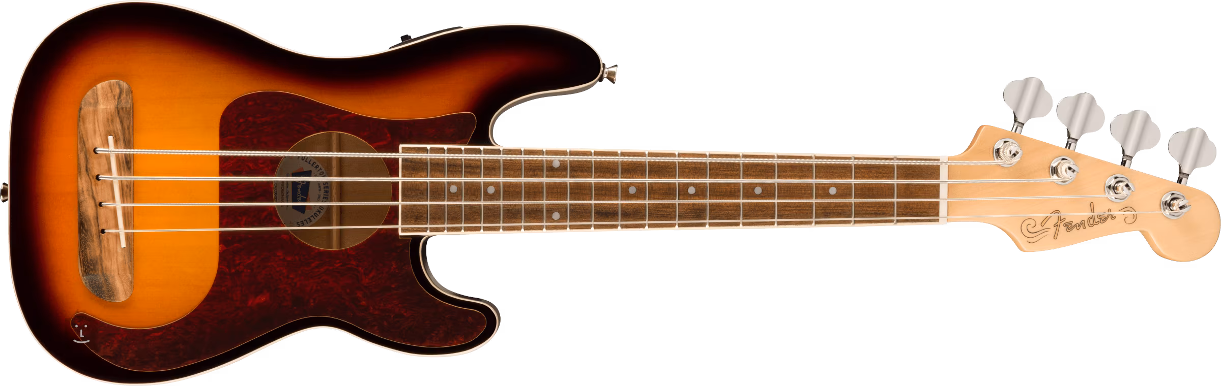 Elektroakustické basové ukulele Fullerton Precision Bass Uke spojuje kompaktní tvary ukulele s designem těla baskytar fender Precision. Samotné tělo nástroje je zhotoveno z přední desky z laminovaného smrku a zadní desky a lubů z masivu okoumé. K javorovému krku s pohodlným “C“ profilem je přilepen ořechový hmatník osazený osmnácti pražci. Struny jsou uchyceny v chromovaných die-cast mechanikách a ořechové kobylce. Stylové zpracování podtrhuje signature Precision Bass pickguard z imitace želvoviny.