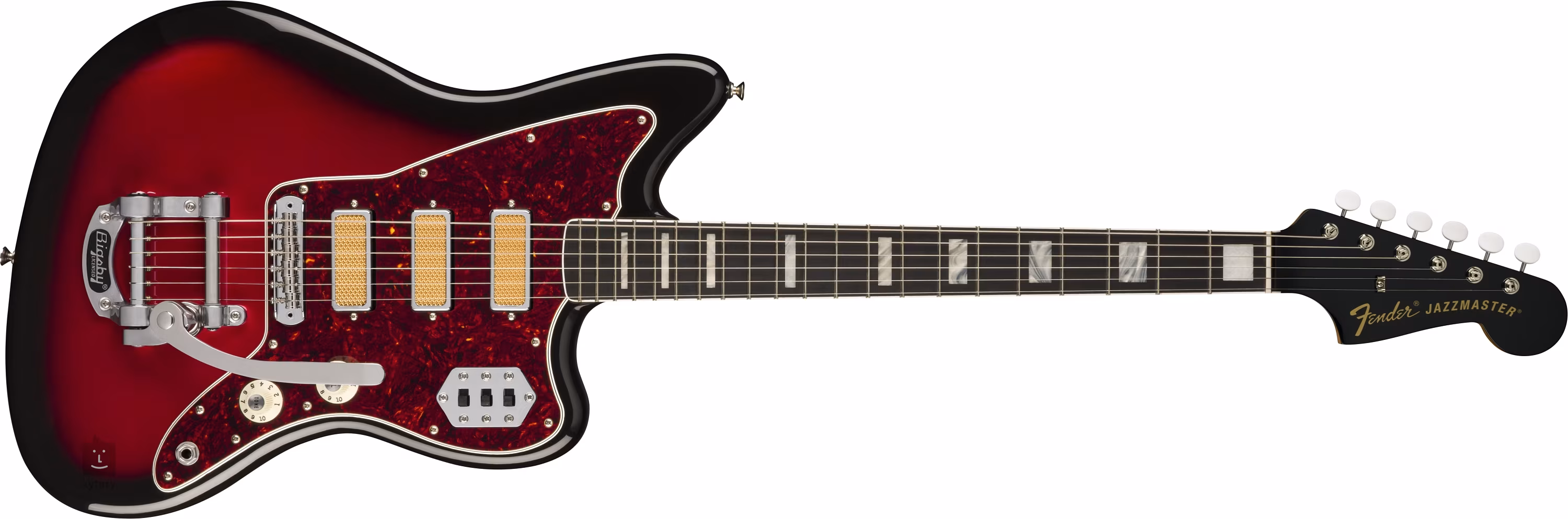 Tři Gold Foil mini humbuckery poskytují kytaře autentický Fender zvuk a feel. Jeho charakter upravíte pomocí potenciometrů hlasitosti a tónové clony, jednotlivé snímače aktivujete třemi On/Off přepínači. Struny jsou ukotveny v ladících mechanikách ve vintage stylu a v licenčním Bigsby B50 tremolu. Stylové zpracování podtrhuje zvolené barevné provedení, pickguard z imitace želvoviny a firemní logo na typické Fender hlavě.