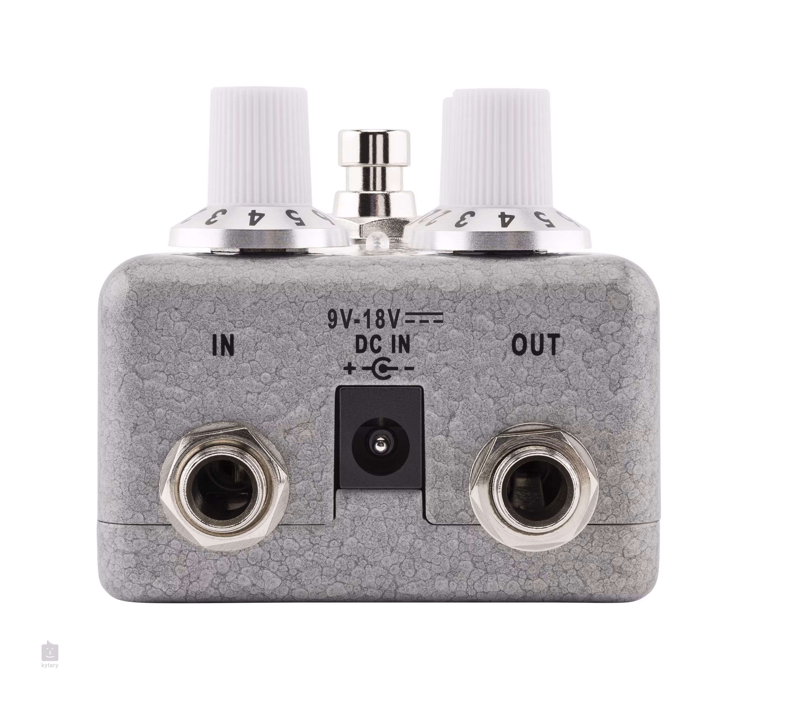 Krabička je zapojena jako true bypass. Veškerá její elektronika je zasazena v bytelném hliníkovém šasi. K napájení můžete využít buď 9V baterii nebo adaptér o napětí 9–18 V. Při použití adaptéru s vyšším napětím dosáhnete většího headroomu.