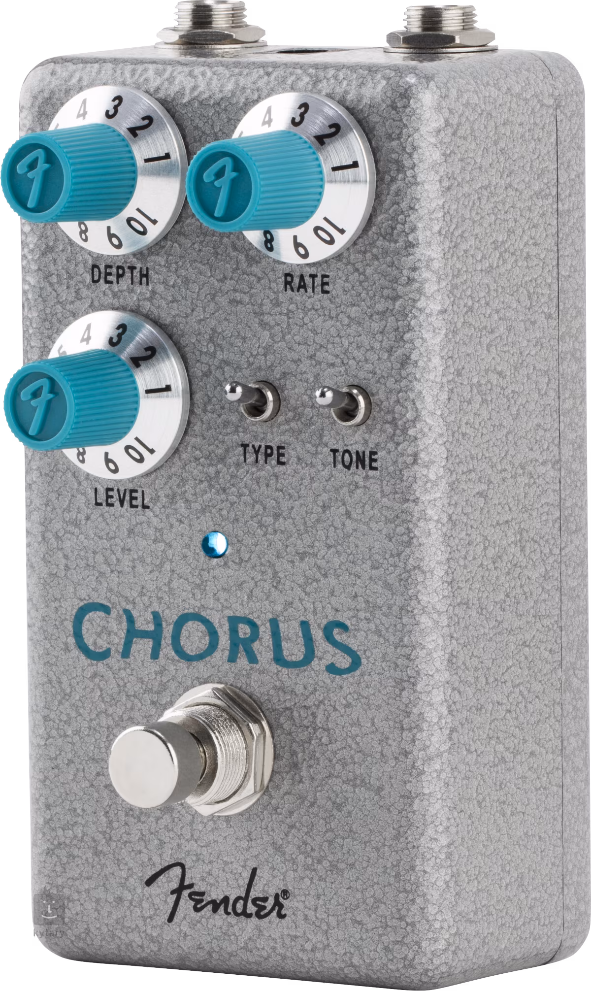 Hammertone Chorus je kompaktní kytarový efekt značky Fender s přímočarým designem a přes menší rozměr poměrně slušnými možnostmi zvukových nastavení modulačního efektu chorus. Krabička nabízí původní Fender obvod s nízkou úrovní šumu, tři ovladače určující rychlost, intenzitu efektové modulace a poměr čistého a modulovaného signálu plus dva přepínače – switchem Type volíte mezi třemi typy chorus efektu (jedno, dvou a čtyřhlasým), přepínačem Tone stáhnete výšky. Jednoduše tak vykouzlíte širokou škálu působivých modulačních zvuků, od decentnějších po expresivnější.