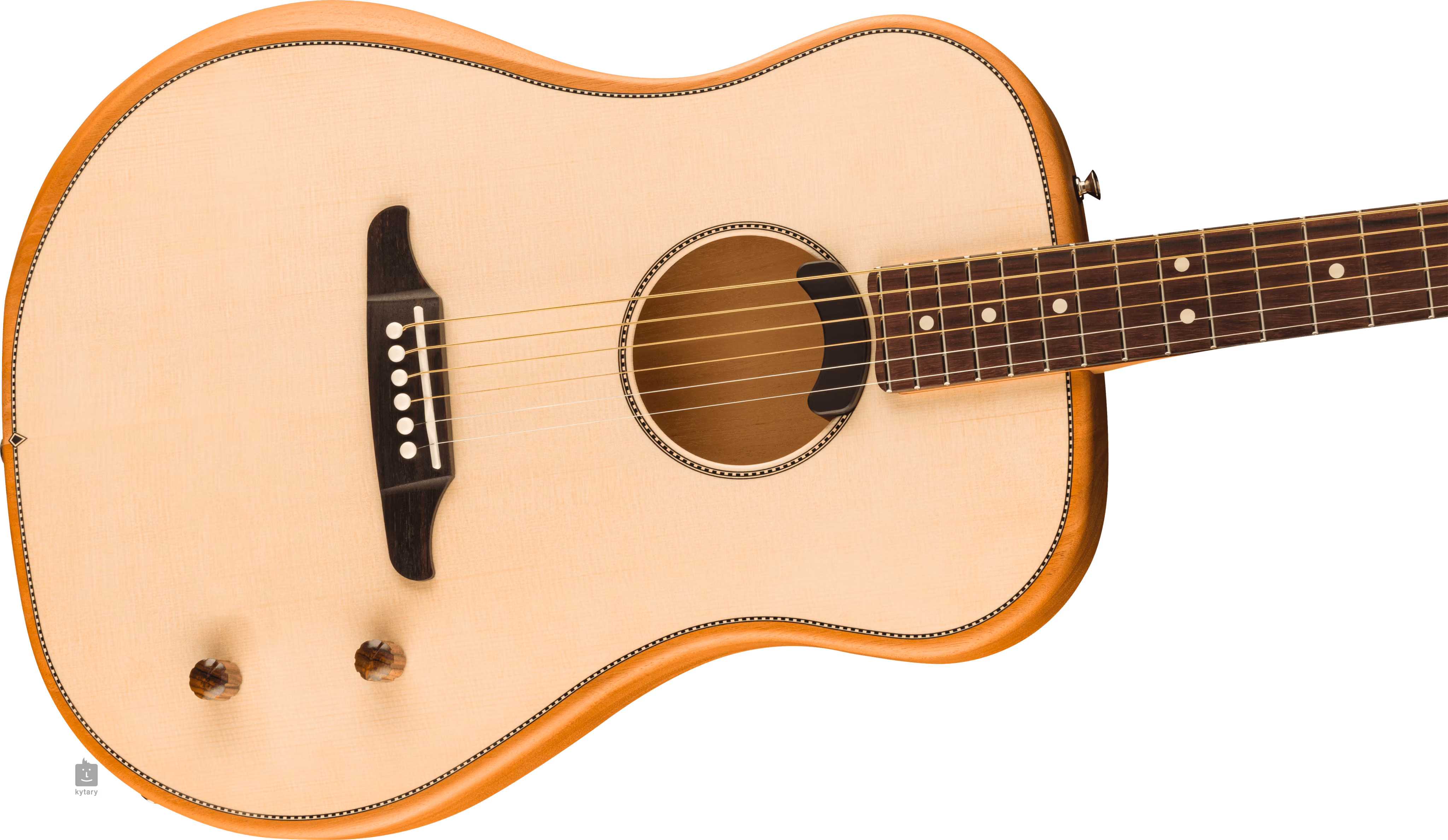 Velké rezonantní tělo kytary Highway Series Dreadnought Natural je zhotoveno ze zadní desky a lubů z komorovaného mahagonu a přední desky z masivu smrku Sitka. V kombinaci s Tapered Floating X žebrováním tak tělo kytary nabízí dynamický organický tón a výbornou rezonanci. K mahagonovému krku je přilepen palisandrový hmatník osazený dvaceti pražci, orientaci po jeho ploše usnadňují bílé poziční tečky.