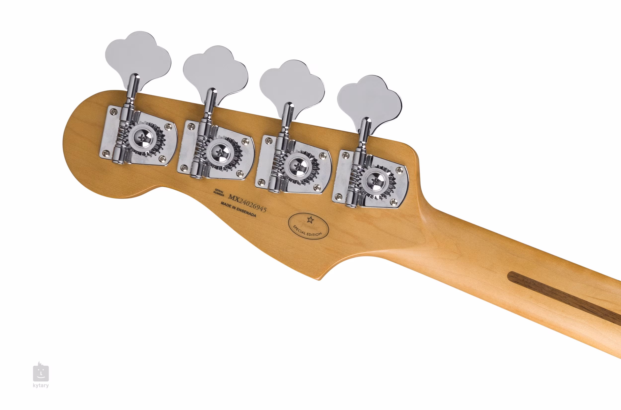 Olšové tělo baskytary zdobí barevná úprava Ocean Turquoise a lesklý polyesterový lak. Javorový krk nabízí pohodlný a rychlý Modern “C” profil, hmatník je osazen dvaceti pražci velikosti Medium Jumbo. Baskytara je osazena Player Series Alnico V Split-Coil snímačem. Charakter zvuku nastavíte pomocí standardních ovladačů hlasitosti a tónové clony. Struny jsou uchyceny ve firemních otevřených (open-gear) ladicích mechanikách a kobylce se čtyřmi sedly. Stylové zpracování podtrhuje pickguard z imitace želvoviny.