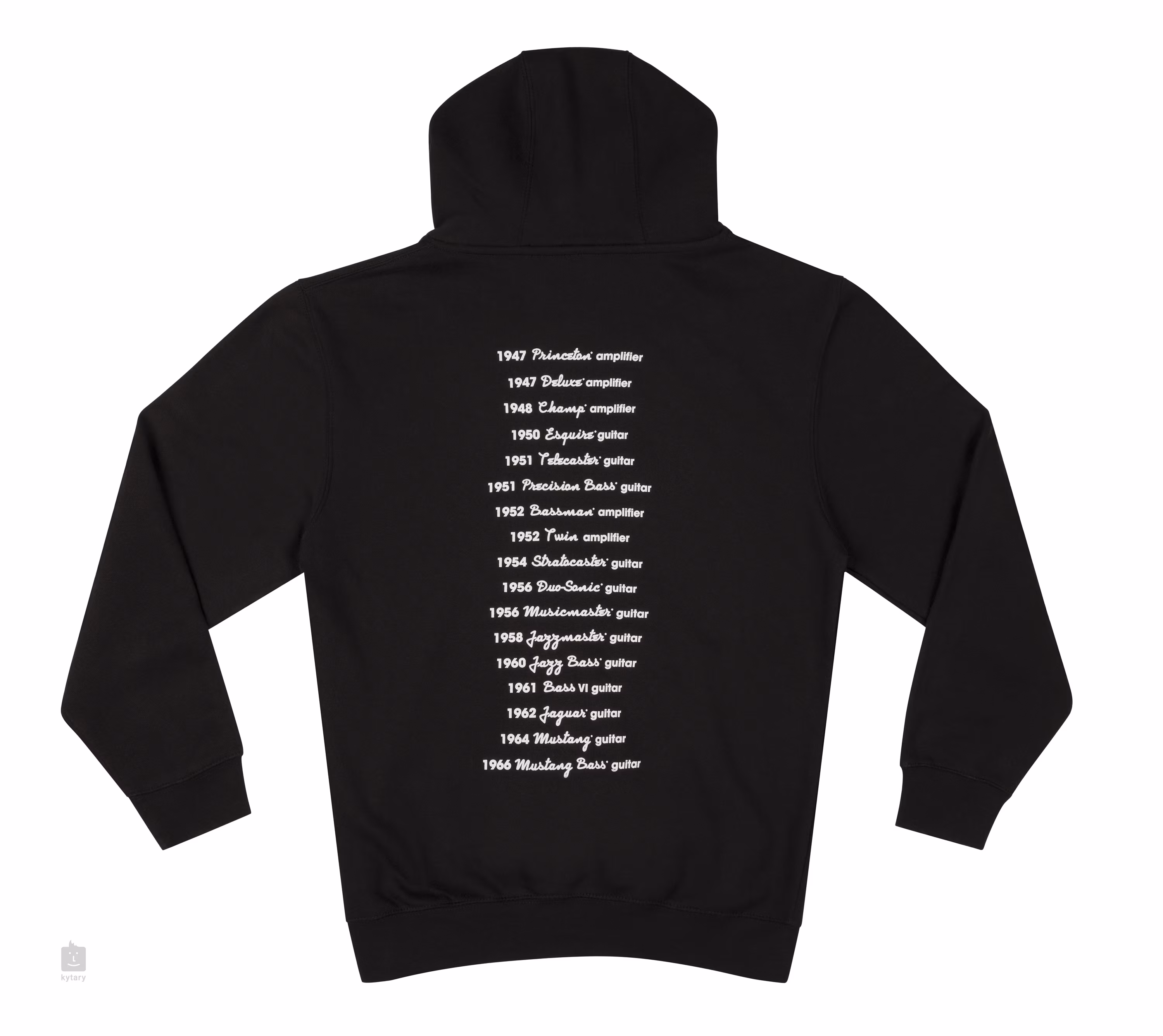 Značka Fender formuje rockovou a kytarovou scénu už od roku 1947, kdy představila své první zesilovače Princeton a Deluxe. O čtyři roky později přišla na trh s prvním Telecasterem a rok 1954 se nesl ve znamení Stratocastera, který je dodnes nejikoničtější elektrickou kytarou všech dob. Mikina Fender Logo Date Back byla vyrobeno pro všechny kytarové nadšence. Zatímco její přední stranu zdobí legendární logo Fender, zadní strana zobrazuje časovou osu nejvýznamnějších milníků této společnosti, od čtyřicátých let až po zlaté šedesátky. Mikina je vyrobena z velmi pohodlného materiálu (80% bavlny a 20% polyesteru), který vás zahřeje při chladných večerech u táboráku.