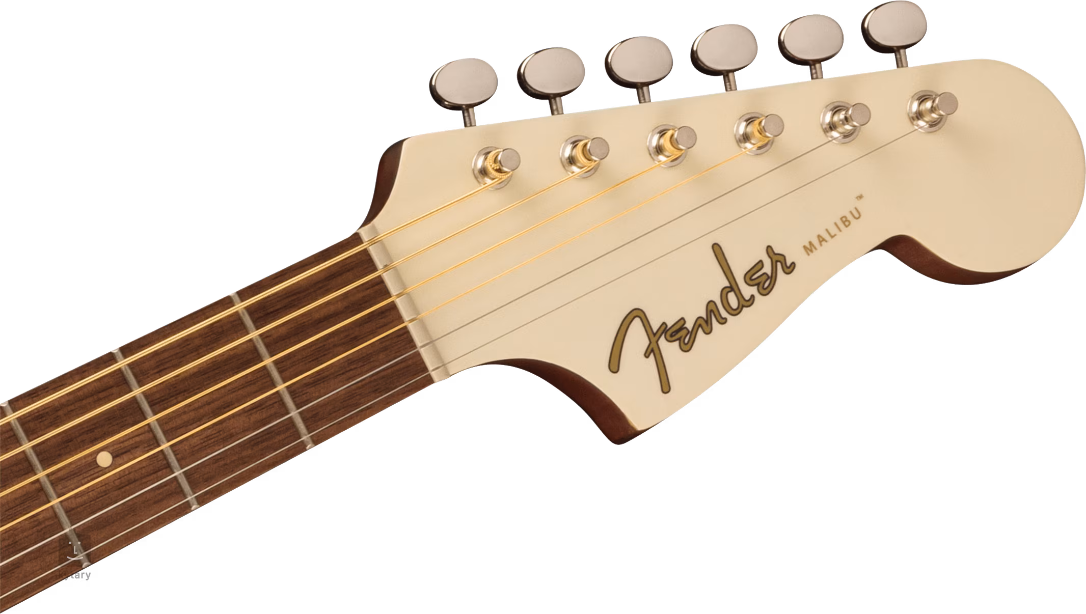 Malibu Player Olympic White je elektroakustická kytara s menším tělem ve stylu modelů Parlor a kratší menzurou. Představuje tak vhodnou volbu pro hráče s menšími prsty, nebo naopak výzvu k hraní akordů v běžně nerealizovatelných prstokladech. Přední deska kytary je zhotovena z masivu smrku sitka, zadní deska a luby jsou zhotoveny z laminovaného sapele. Ke krku ze dřeva nato s užším easy-to-play “Slim C” profilem je přilepen ořechový hmatník osazený dvaceti pražci, orientaci po jeho ploše usnadňují poziční tečky.