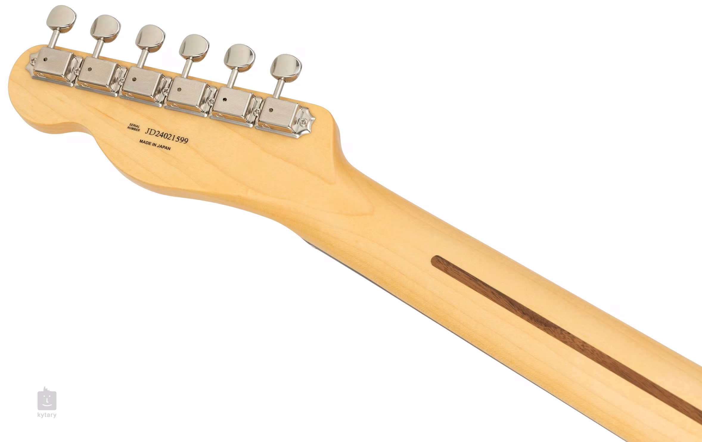 Dva Hybrid II Custom Voiced single-coil snímače poskytují kytaře ryzí zvuk a feel modelů Telecaster. Charakter zvuku upravíte pomocí potenciometrů hlasitosti, tónové clony a čtyřpolohového přepínače snímačů, který nabízí paralelní i sériové zapojení snímačů na pozicích 2 a 4. Struny jsou ukotveny v uzamykatelných mechanikách ve vintage stylu a přes Tele kobylku se třemi mosaznými sedly skrze tělo. Stylové zpracování podtrhuje třívrstvý bílo-modrý pickguard.