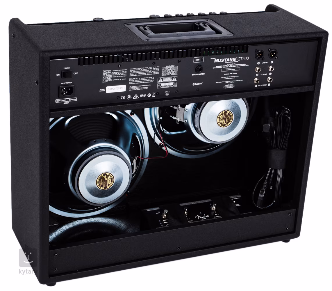 Model GT200 nabízí 21 simulací klasických kytarových aparátů – od Bassman ´59 po moderní metalové zesilovače – a 47 různých efektů. Úplnou novinkou je vybavení aparátu WiFi připojením, které umožňuje stahování updatů, přístup k presetům vytvořených firemními hráči Fender a spojení s komunitou kreativních hráčů a skladatelů. Bluetooth konektivita potěší každého, kdo nemá k dispozici zvukově adekvátní aparaturu pro reprodukci hudby z mobilu, tabletu a jiných multimediálních zařízení. Dva dvanáctipalcové reproduktory vám poskytnou stereo zvuk v plném dynamickém rozsahu.