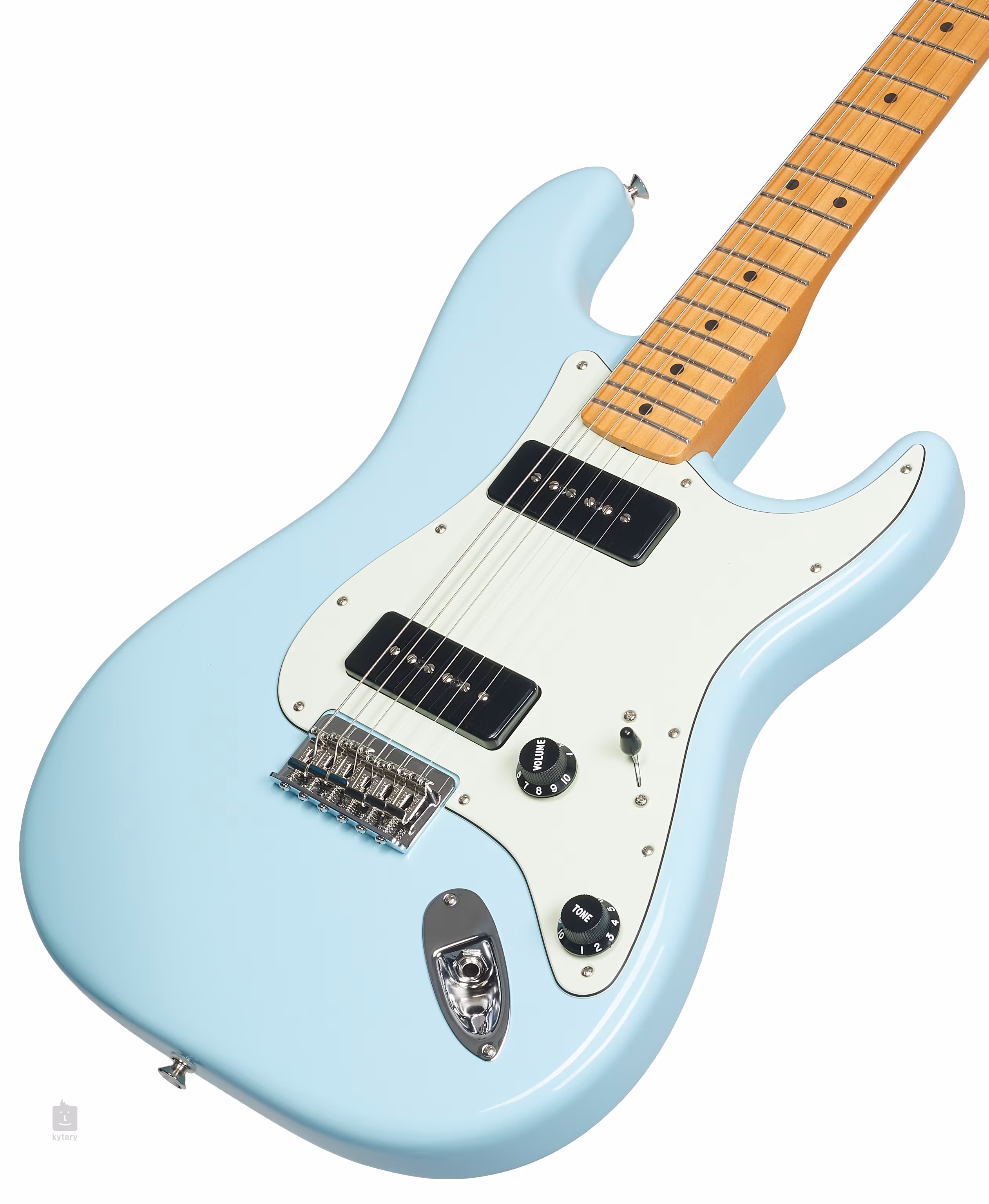 Dva single-coil snímače Noventa v soapbar designu poskytují kytaře šťavnatý single-coil zvuk s výraznějšími středy. Charakter zvuku lze upravit pomocí potenciometrů hlasitosti, tónové clony a třípolohovým přepínačem snímačů. Struny jsou ukotveny ve firemních mechanikách ve vintage stylu a, pro Stratocaster netradičně, přes pevnou kobylku se šesti ocelovými sedly skrze tělo nástroje. Stylové zpracování podtrhuje třívrstvý pickguard v barevném provedení Mint Green.