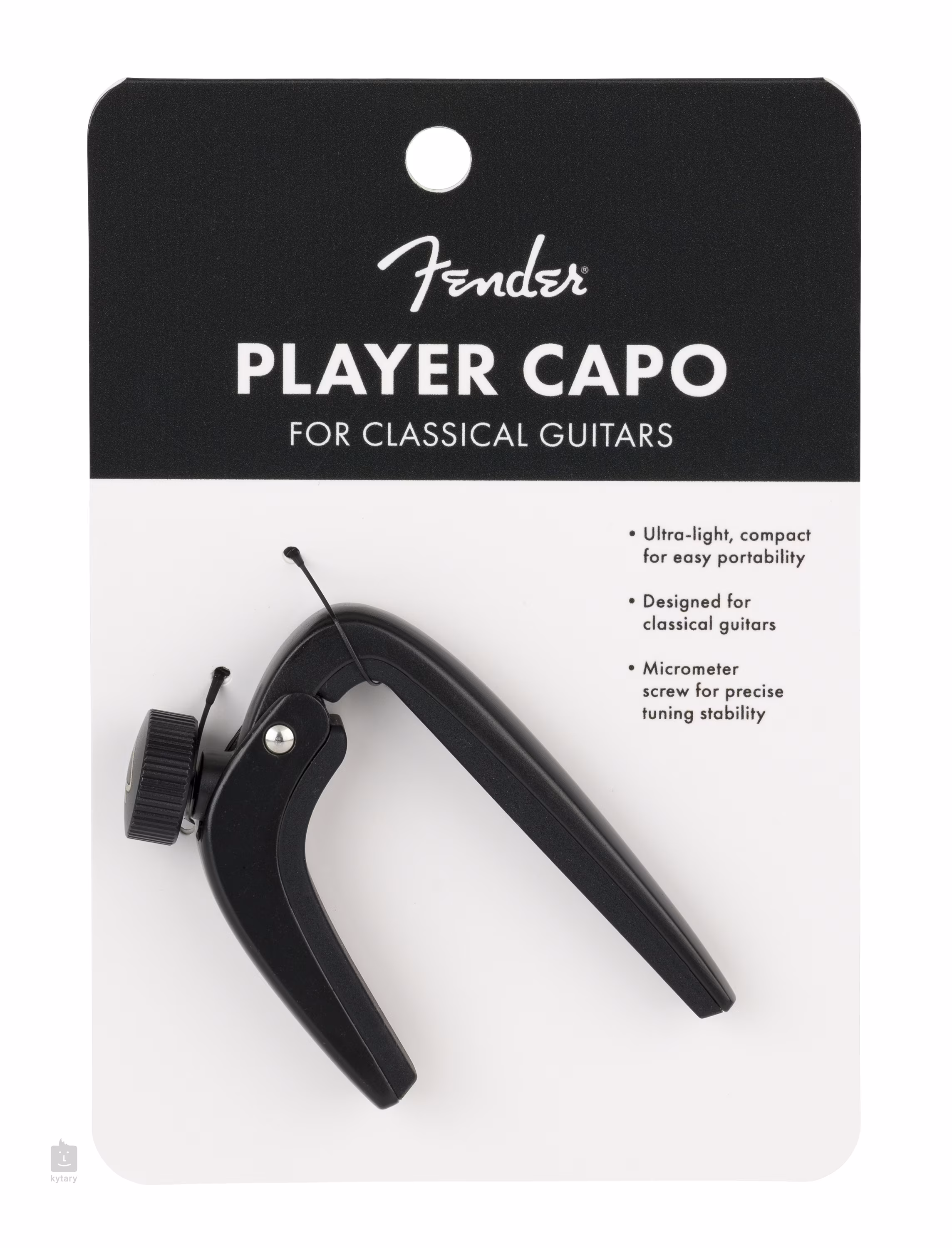 Tento kapodastr z řady Fender Player Capo je vhodný pro většinu klasických kytar s širokým, rovným hmatníkem. Jedná se o spolehlivý a cenově dostupný model s utahovacím šroubem, který vám umožní přesně přizpůsobit tlak na struny, čímž zajišťuje precizní intonaci a eliminuje nežádoucí bzučení a přezvuky strun. Kapodastr je velmi lehký a nabízí elegantní, nenápadný design. V místě kontaktu s krkem a hmatníkem má měkký pogumovaný povrch, který je šetrný k povrchu nástroje, abyste se nemuseli obávat jeho poškrábání. Zkrátka spolehlivá pomůcka pro hráče všech úrovní.