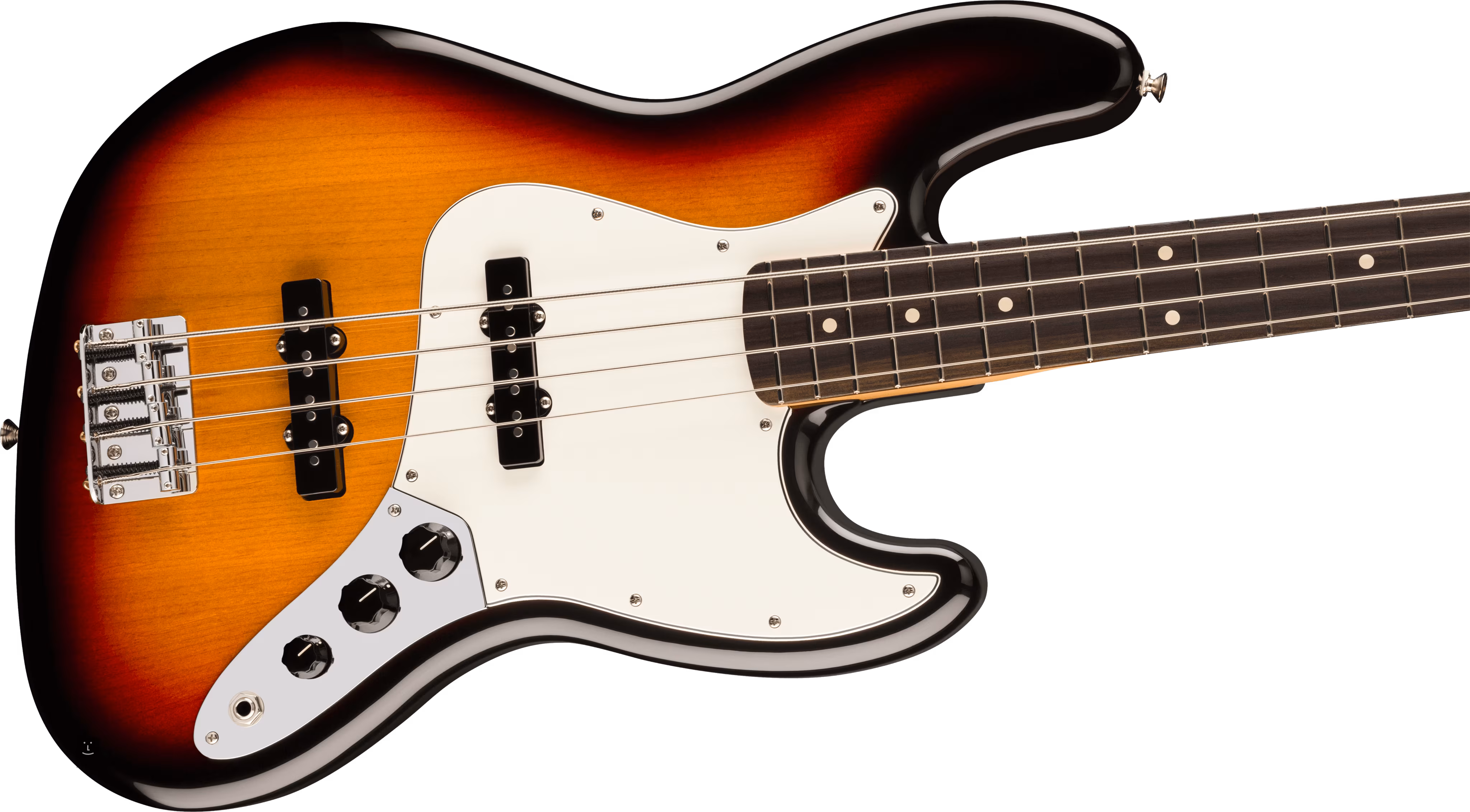 Modernější JB tón a feel dvou Player Series Alnico 5 Jazz Bass single-coil snímačů oceníte v široké škále hudebních stylů. Kontury zvuku upravíte pomocí standardních ovladačů. Struny jsou ukotveny ve firemních otevřených ladicích mechanikách ve vintage stylu a pevné kobylce se čtyřmi nastavitelnými sedly. Stylové zpracování podtrhuje třívrstvý Parchment pickguard.