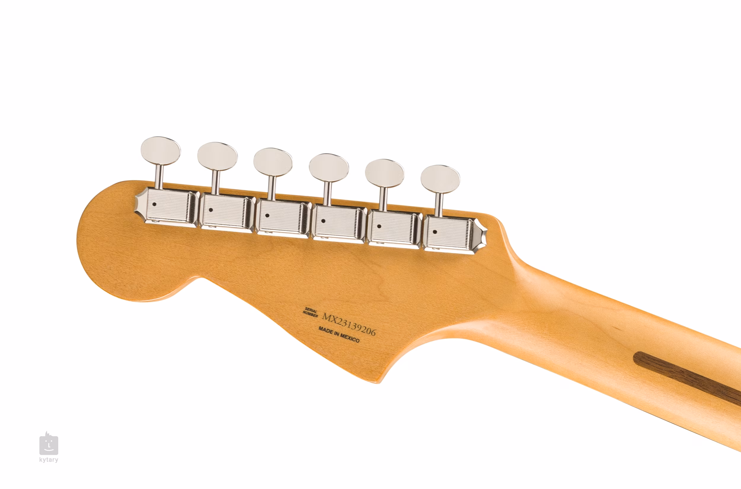 Dva Player Series single-coil snímače s Alnico 5 magnety poskytují kytaře modernější Fender feel a zvuk, který oceníte v široké škále hudebních stylů. S charakterem zvuku lze pracovat pomocí ovladačů hlasitosti, tónové clony a třípolohového přepínače snímačů. Struny jsou uchyceny v mechanikách ClassicGear s převodovým poměrem 18:1 a přes kobylku s mosaznými sedly z Mustanga ve vintage floating tremolu. Stylový vzhled kytary podtrhuje světlý třívrstvý pickguard a finiš Aquatone Blue.