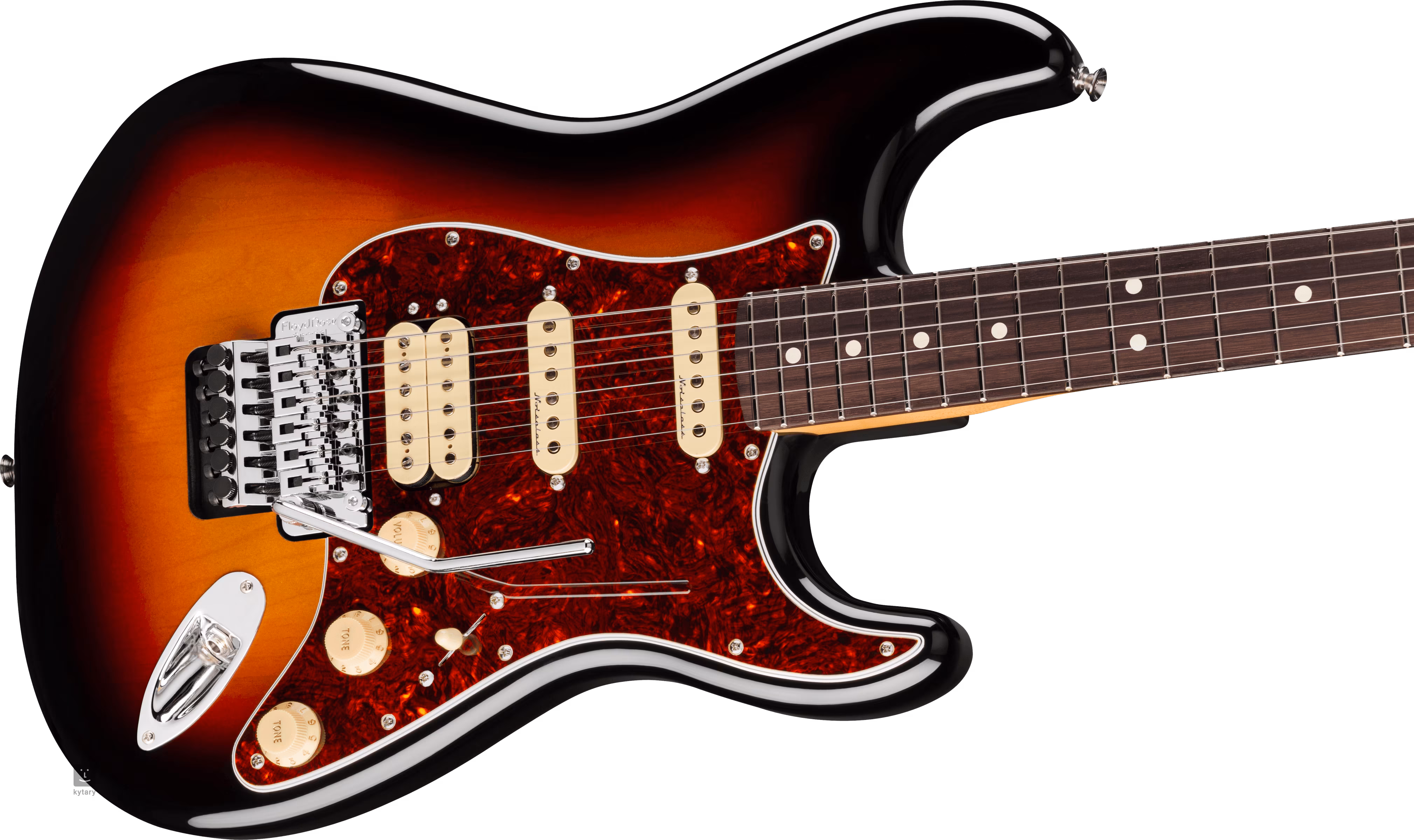 Struny jsou uchyceny přes nultý pražec z materiálu TusQ (u standardní řady je umělá kost) ve firemních ladicích mechanikách a v dvojzvratném tremolu Floyd Rose Special. Zámky na nultém pražci zaručují, že ladění bude držet i při častějším používání tremolo páky. Stylový vzhled kytary podtrhuje čtyřvrstvý pickguard z imitace želvoviny a finiš 3-Tone Sunburst.