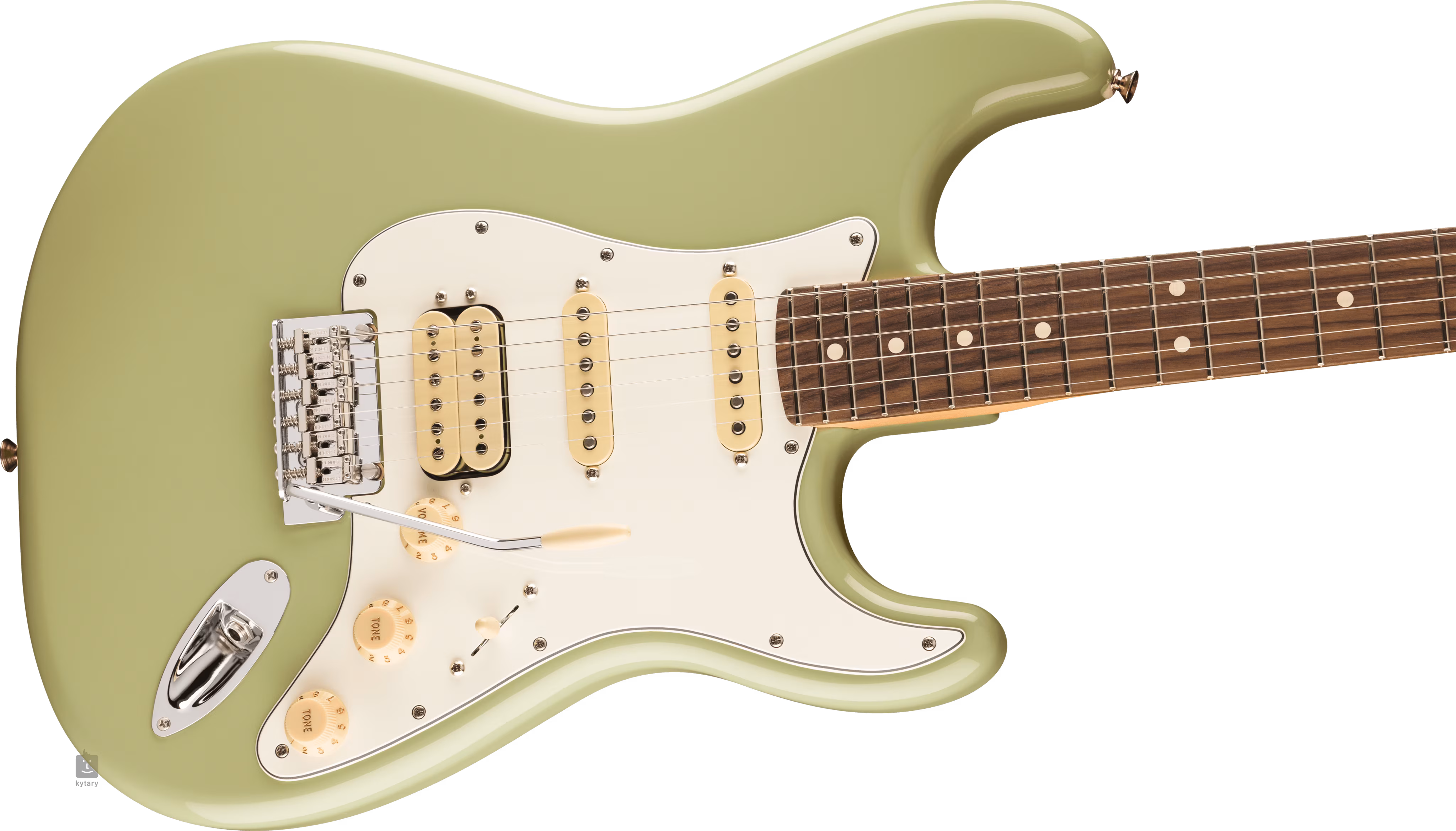 Kobylkový Player Series humbucker s Alnico 2 a dva single-coil snímače s Alnico 5 magnety poskytují kytaře modernější Fender feel a zvuk, který oceníte v široké škále hudebních stylů. S charakterem zvuku lze pracovat pomocí ovladačů hlasitosti, tónové clony a pětipolohového přepínače snímačů. Struny jsou uchyceny v mechanikách ClassicGear s převodovým poměrem 18:1 a v synchronizovaném “2-point” tremolu s ocelovými sedly. Stylový vzhled kytary podtrhuje světlý třívrstvý pickguard a finiš Birch Green.