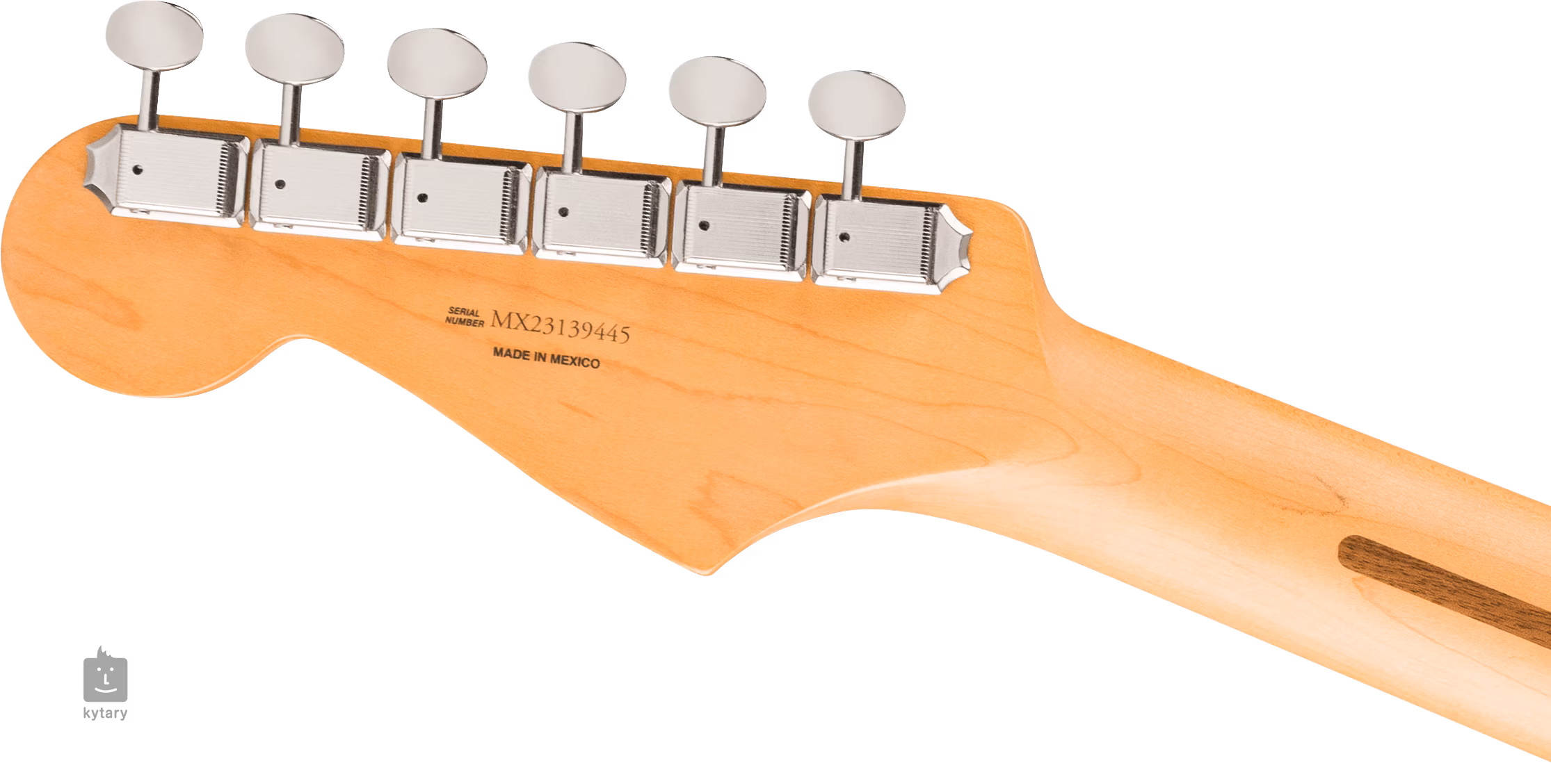 Tři Player Series single-coil snímače s Alnico 5 magnety poskytují kytaře modernější Fender feel a zvuk, který oceníte v široké škále hudebních stylů. S charakterem zvuku lze pracovat pomocí ovladačů hlasitosti, tónové clony a pětipolohového přepínače snímačů. Struny jsou uchyceny v mechanikách ClassicGear s převodovým poměrem 18:1 a v synchronizovaném “2-point” tremolu s ocelovými sedly. Stylový vzhled kytary podtrhuje černý třívrstvý pickguard a finiš Polar White.