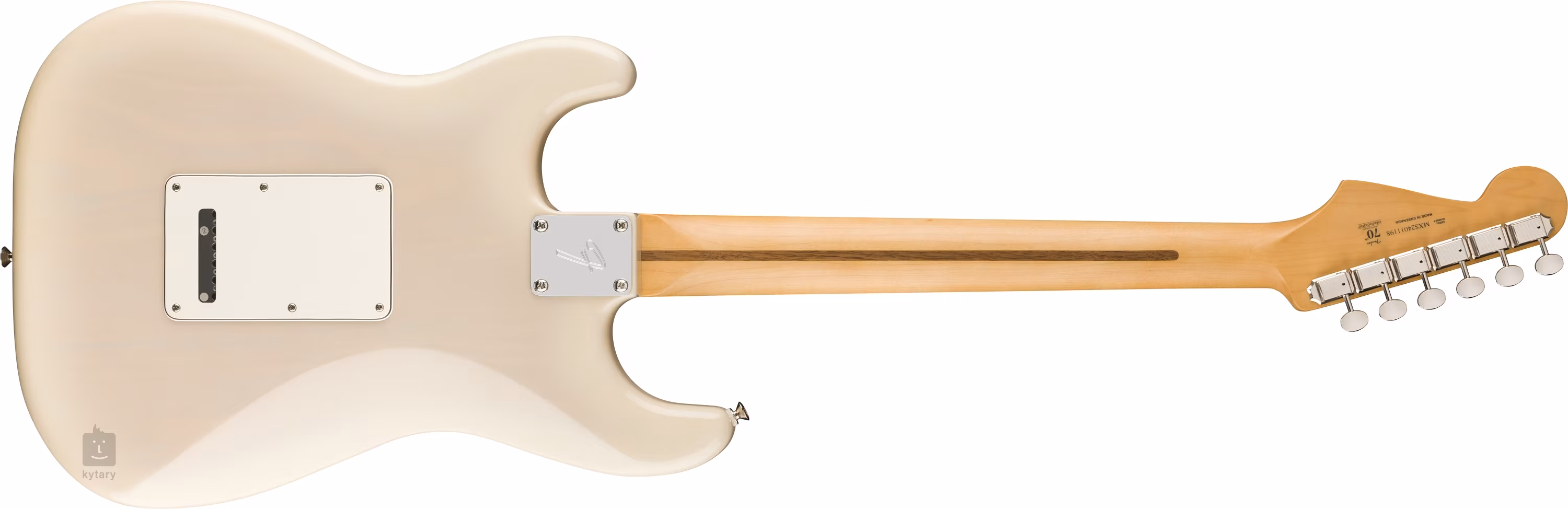 Tři Player Series single-coil snímače s Alnico 5 magnety poskytují kytaře modernější Fender feel a zvuk, který oceníte v široké škále hudebních stylů. S charakterem zvuku lze pracovat pomocí ovladačů hlasitosti, tónové clony a pětipolohového přepínače snímačů. Struny jsou uchyceny v mechanikách ClassicGear s převodovým poměrem 18:1 a v synchronizovaném “2-point” tremolu s ocelovými sedly. Stylový vzhled kytary podtrhuje světlý třívrstvý pickguard a lesklý finiš White Blonde.