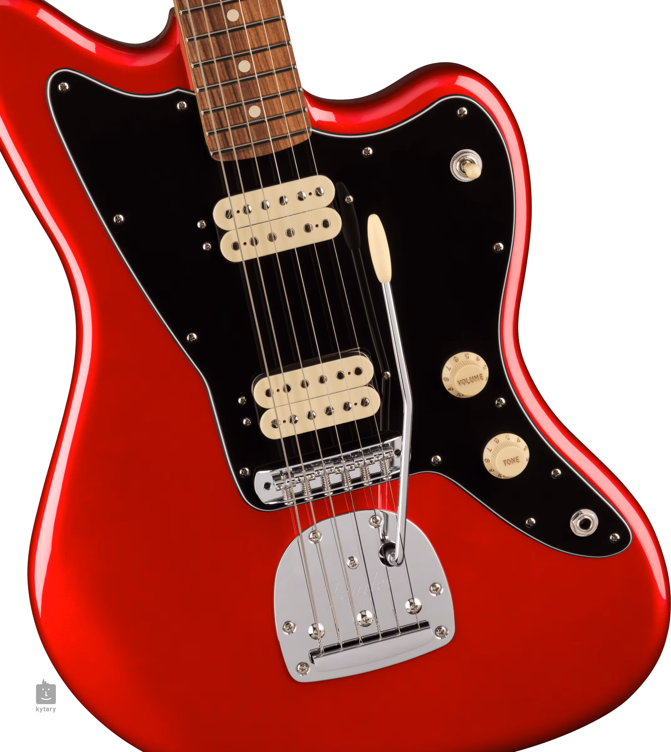 Olšové tělo Jazzmasteru PLAYER JAZZMASTER PF CAR kryje lesklý polyesterový lak. K javorovému krku s “Modern C” profilem je přilepen hmatník ze dřeva pau ferro osazený dvaadvaceti pražci velikosti Medium Jumbo.