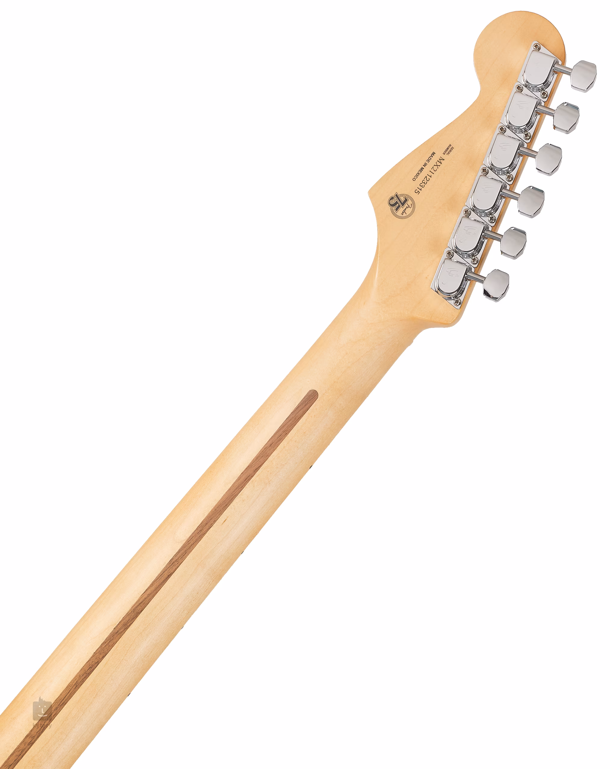 Struny jsou uchyceny ve firemních ladících mechanikách ve Vintage designu a v pevné kobylce se šesti sedly (ukotvení strun skrze tělo). Stylový design nástroje šperkuje černý třívrstvý pickguard.