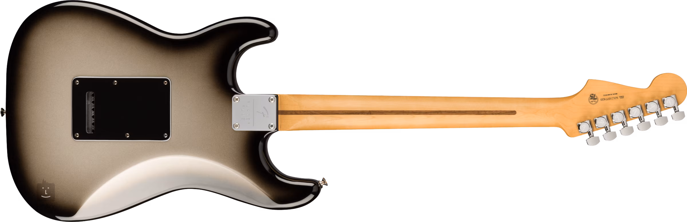 Struny jsou ukotveny ve firemních uzamykatelných mechanikách (Deluxe Cast/Sealed Locking) a synchronizovaném tremolu s dvoubodovým uchycením. Stylový vzhled podtrhuje černý třívrstvý pickguard a firemní logo na hlavici nástroje.