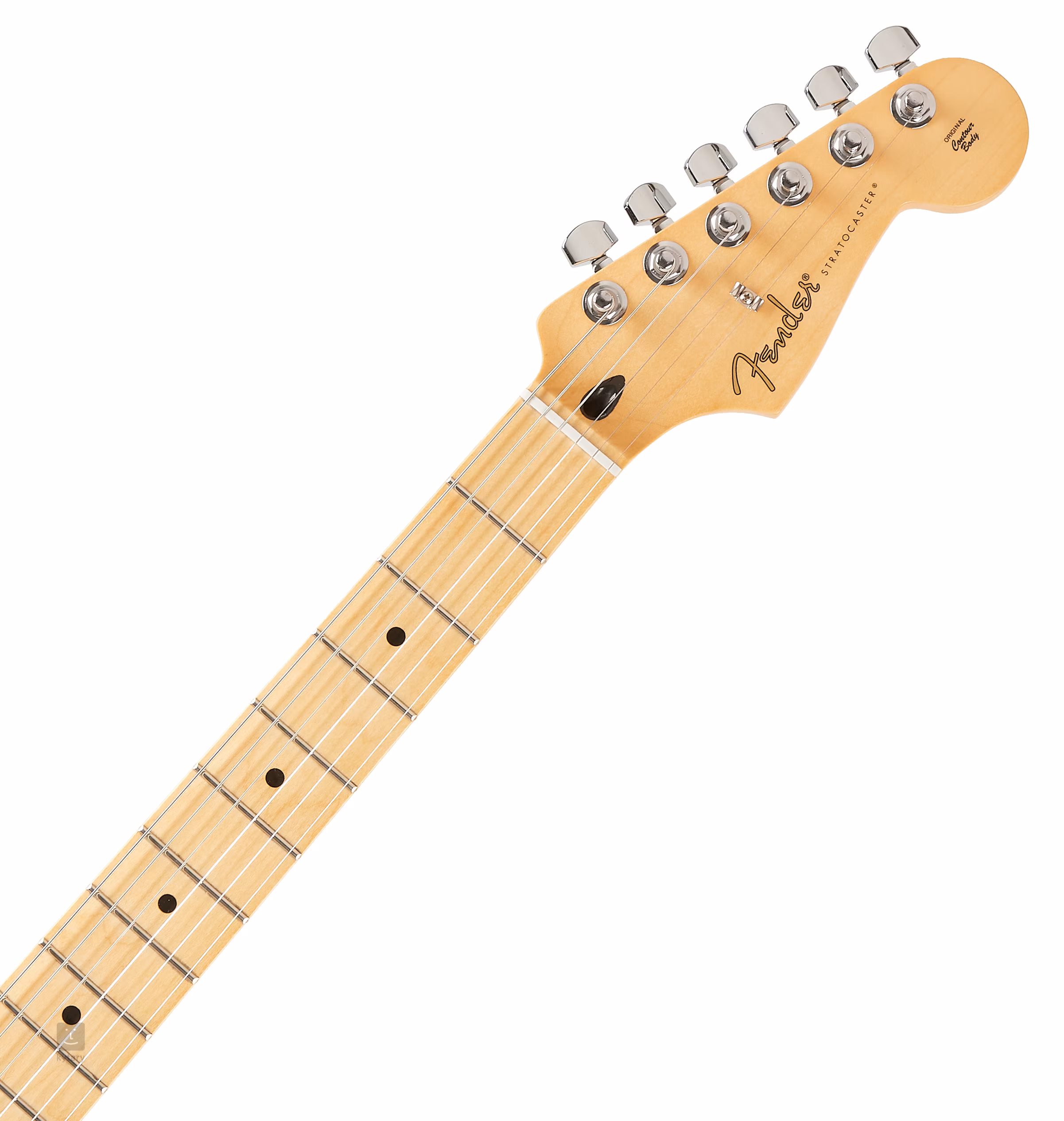 Olšové tělo tohoto Stratocasteru pokrývá lesklý polyesterový lak. Plochu javorového hmatníku rozděluje dvaadvacet pražců velikosti Medium Jumbo a tradiční poziční tečky.