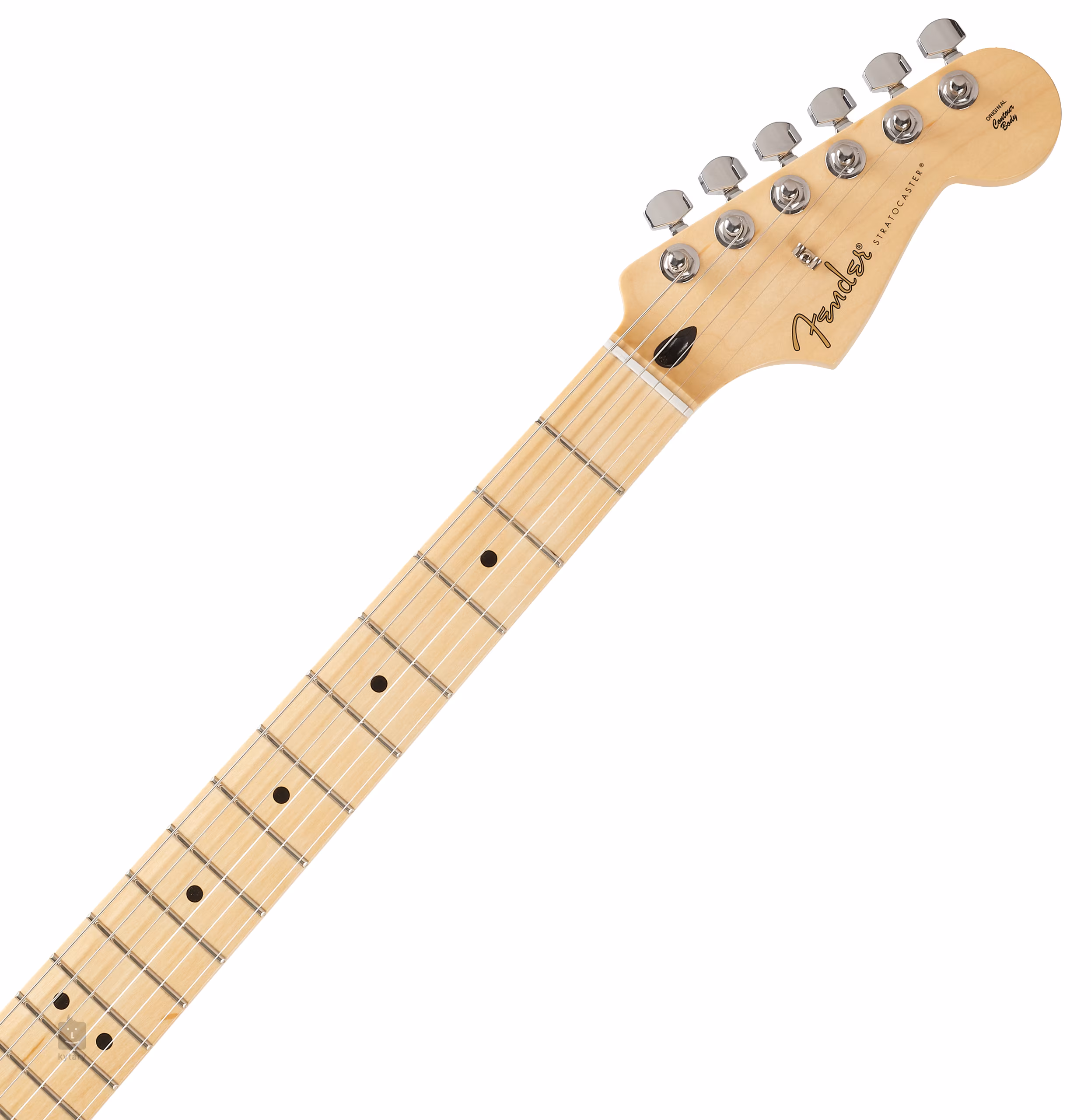 Olšové tělo tohoto Stratocasteru pokrývá lesklý polyesterový lak. Plochu javorového hmatníku rozděluje dvaadvacet pražců velikosti Medium Jumbo a tradiční poziční tečky.