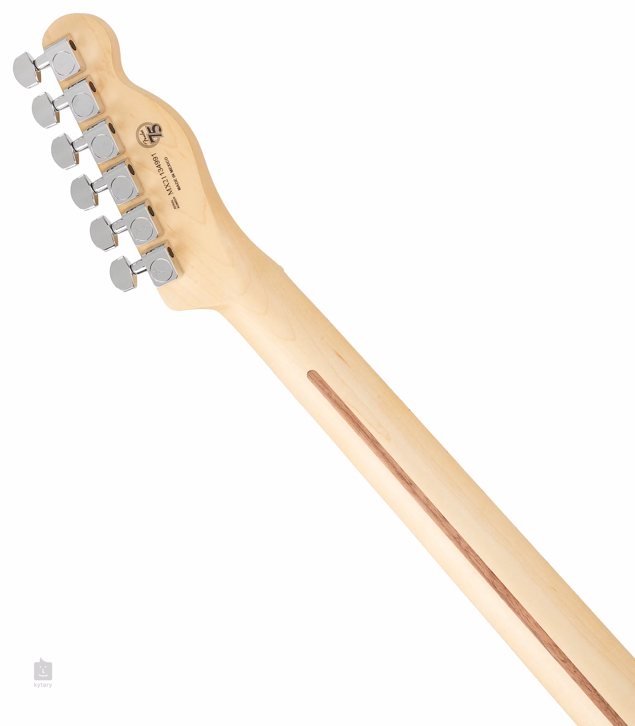 Olšové tělo tohoto Telecasteru pokrývá lesklý polyesterový lak. K přišroubovanému javorovému krku s příjemným profilem Modern C přiléhá též javorový hmatník osazený dvaadvaceti pražci velkosti Medium Jumbo. Orientaci po jeho ploše usnadňují poziční značky.