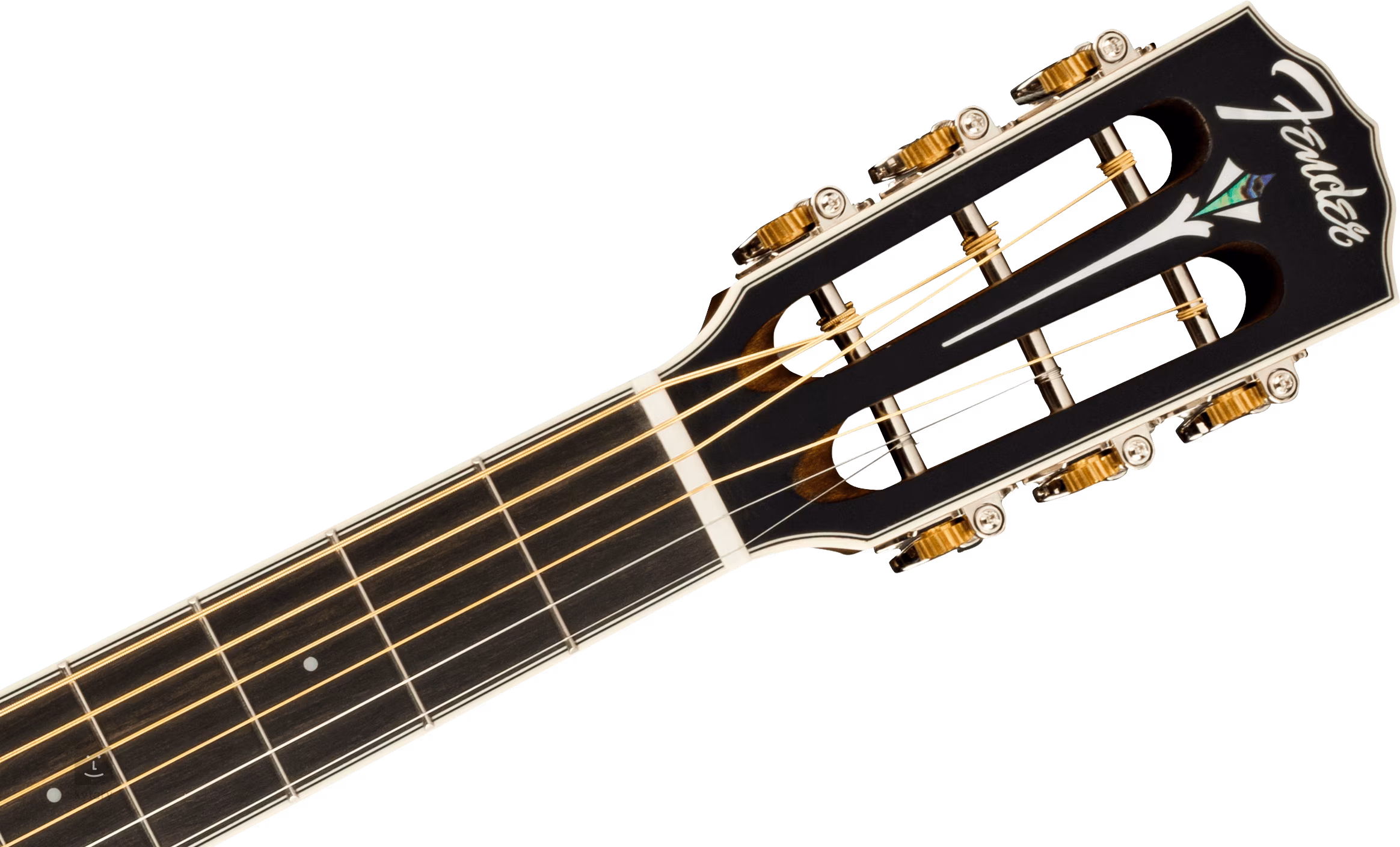 Možnost ozvučení nabízí elektronika Fender/Fishman s dvoupásmovým ekvalizérem a zabudovanou ladičkou. Kytara je dodávána v kufru.