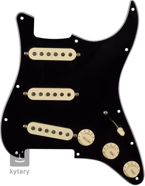 Pickguardy Pre-Wired Strat značky Fender představují rychlé a bezbolestné řešení výměny vašeho starého pickguardu a snímačů. Konkrétně Strat SSS 57/62 BWB nabízí černý pickguard osazený single-coil snímači Fender Original 57/62, přepínačem snímačů, potenciometry (1x Volume, 2x Tone) a kompletně hotovou elektriku. Na vás toho tak moc nezbývá – odstranit starý pickguard, připájet výstupní jack, vyřešit uzemnění, přišroubovat nový pickguard a vyrazit do světa vyzbrojeni autentickým Fender zvukem.