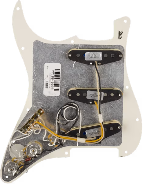 Pickguardy Pre-Wired Strat značky Fender představují rychlé a bezbolestné řešení výměny vašeho starého pickguardu a snímačů. Konkrétně Strat SSS FAT 50'S WBW nabízí bílý pickguard osazený single-coil snímači Fender Custom Shop Fat ’50’s, přepínačem snímačů, potenciometry (1x Volume, 2x Tone) a kompletně hotovou elektriku. Na vás toho tak moc nezbývá – odstranit starý pickguard, připájet výstupní jack, vyřešit uzemnění, přišroubovat nový pickguard a vyrazit do světa vyzbrojeni autentickým Fender zvukem.