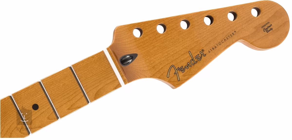 Originální krk pro nástroje značky Fender z javoru v populární „roasted“ úpravě, která nejen skvěle vypadá, ale zároveň vyniká skvělou odolností proti změnám vlhkosti, dlouhým sustainem a specifickou zvukovou charakteristikou. Krk byl vyroben v Mexiku, kde byly také instalovány pražce a nultý pražec ze syntetické kosti. Krk je opatřen uretanovým lakem s matnou povrchovou úpravou na zadní straně, přední strana hlavy je pak v lesklém finiši.