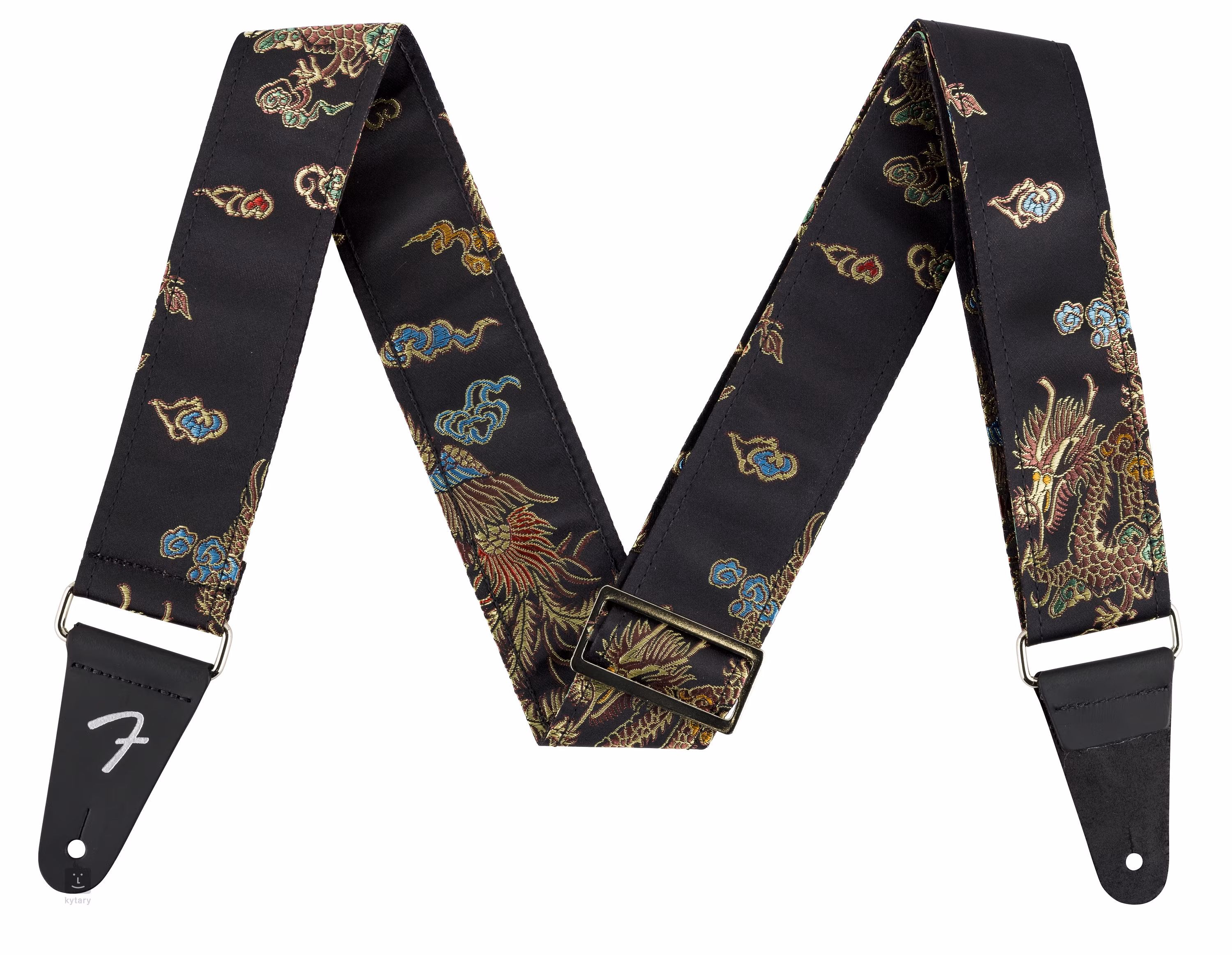 Popruhy z řady Satin Dragon Strap od společnosti Fender zaujmou na první pohled originálními motivy z čínské kulturní tradice, které podtrhnou váš jedinečný styl. Zároveň disponují jemným saténovým povrchem, který vám zajistí dokonalé pohodlí a pocit luxusu. Tento model byl vyroben v USA z pohodlné a odolné kombinace polyesteru a nylonu. Pro bezpečné uchycení k nástroji je popruh vybaven koženými zakončeními s logem Fender.