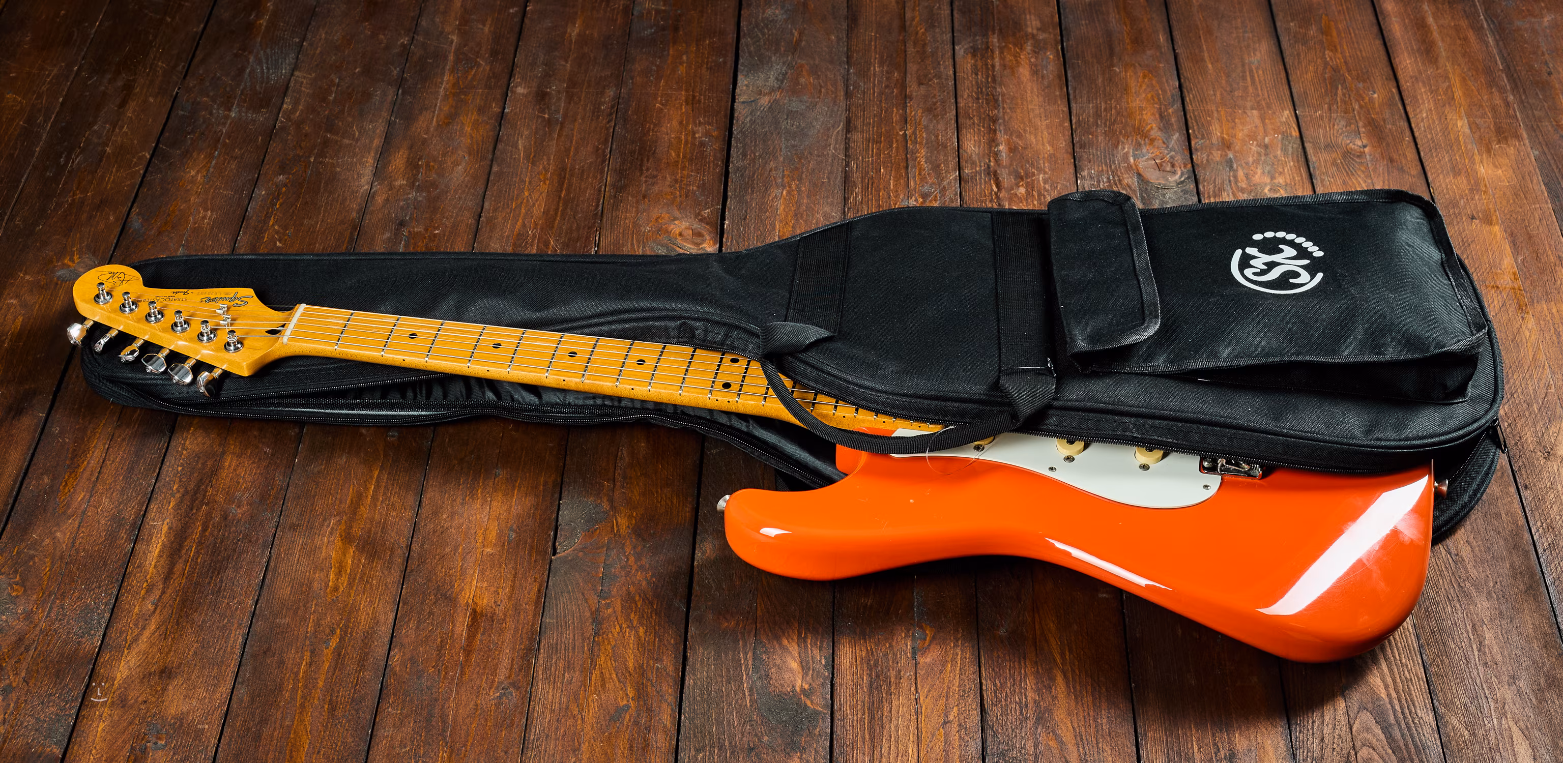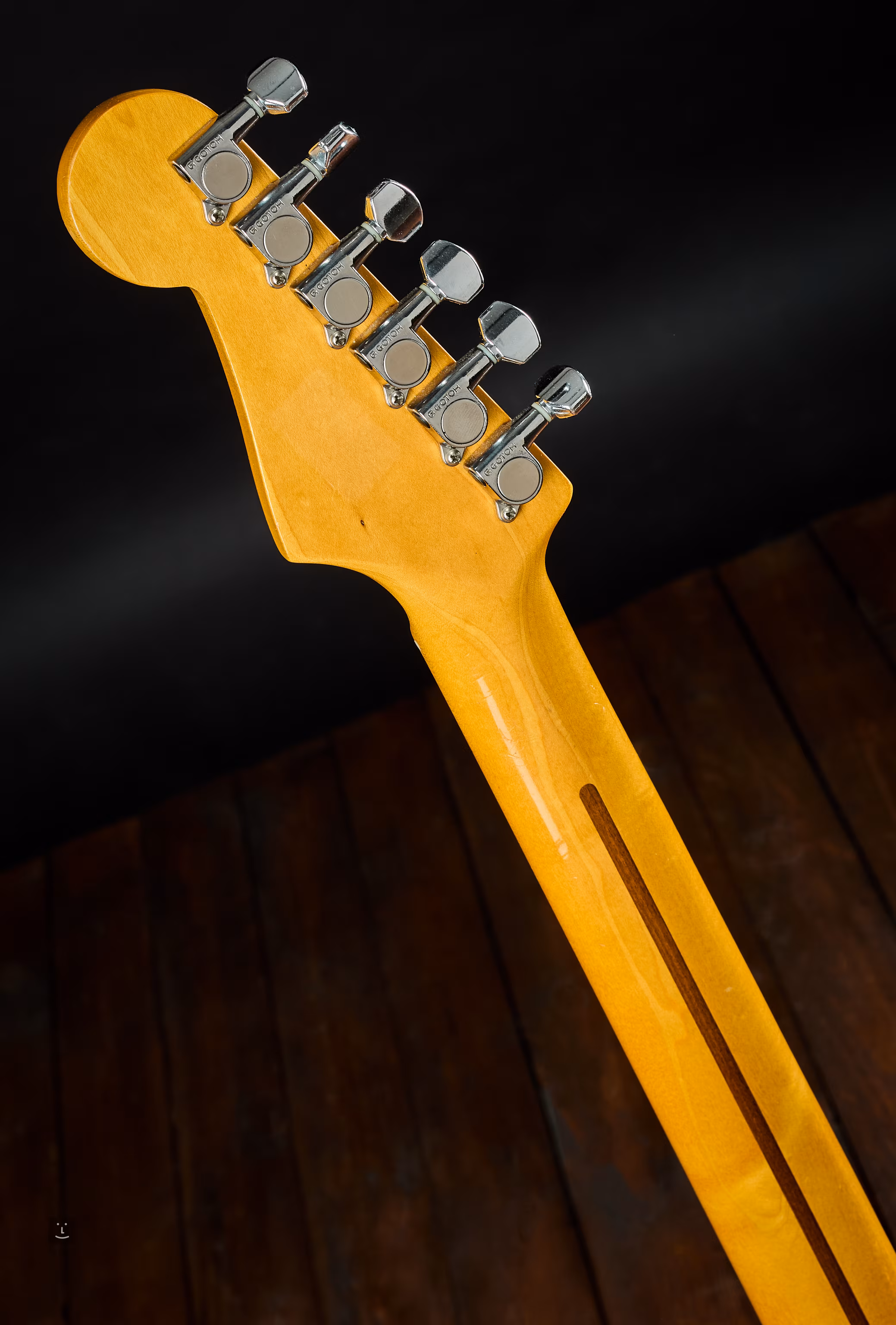 Tento stratocaster modelovaný na základě modelu z roku 1958 v pastelové barvě Fiesta Red s javorovým hmatníkem.