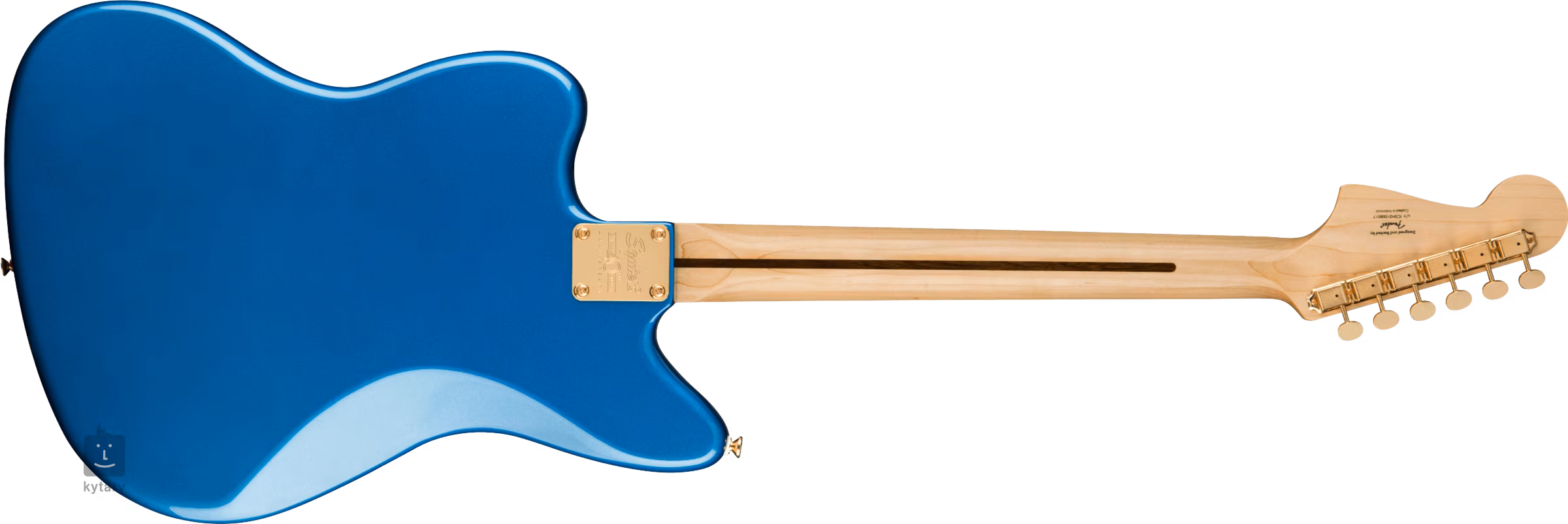 40th Anniversary Jazzmaster Gold Edition nabízí řadu stylových prvků, ať už hardware a pickguard ve zlatém provedení, lemovaný hmatník z fíkovníku osazený polohovými bloky z imitace perleti, výroční rytinu na neck plate nebo kompletně lesklý finiš těla i krku.