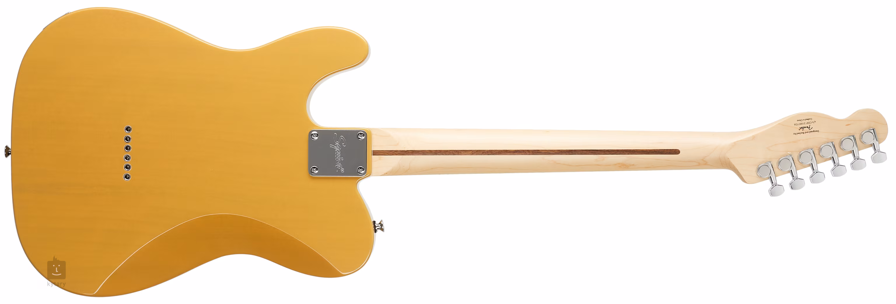 O zvuk nástroje se starají dva firemní single-coil snímače s keramickými magnety. Kontury zvuku upravíte pomocí potenciometrů hlasitosti, tónové clony a třípolohového přepínače snímačů. Struny jsou ukotveny ve firemních chromovaných die-cast mechanikách a přes pevnou kobylku skrze tělo. Stylové zpracování podtrhuje černý třívrstvý pickguard a firemní logo na hlavici kytary.