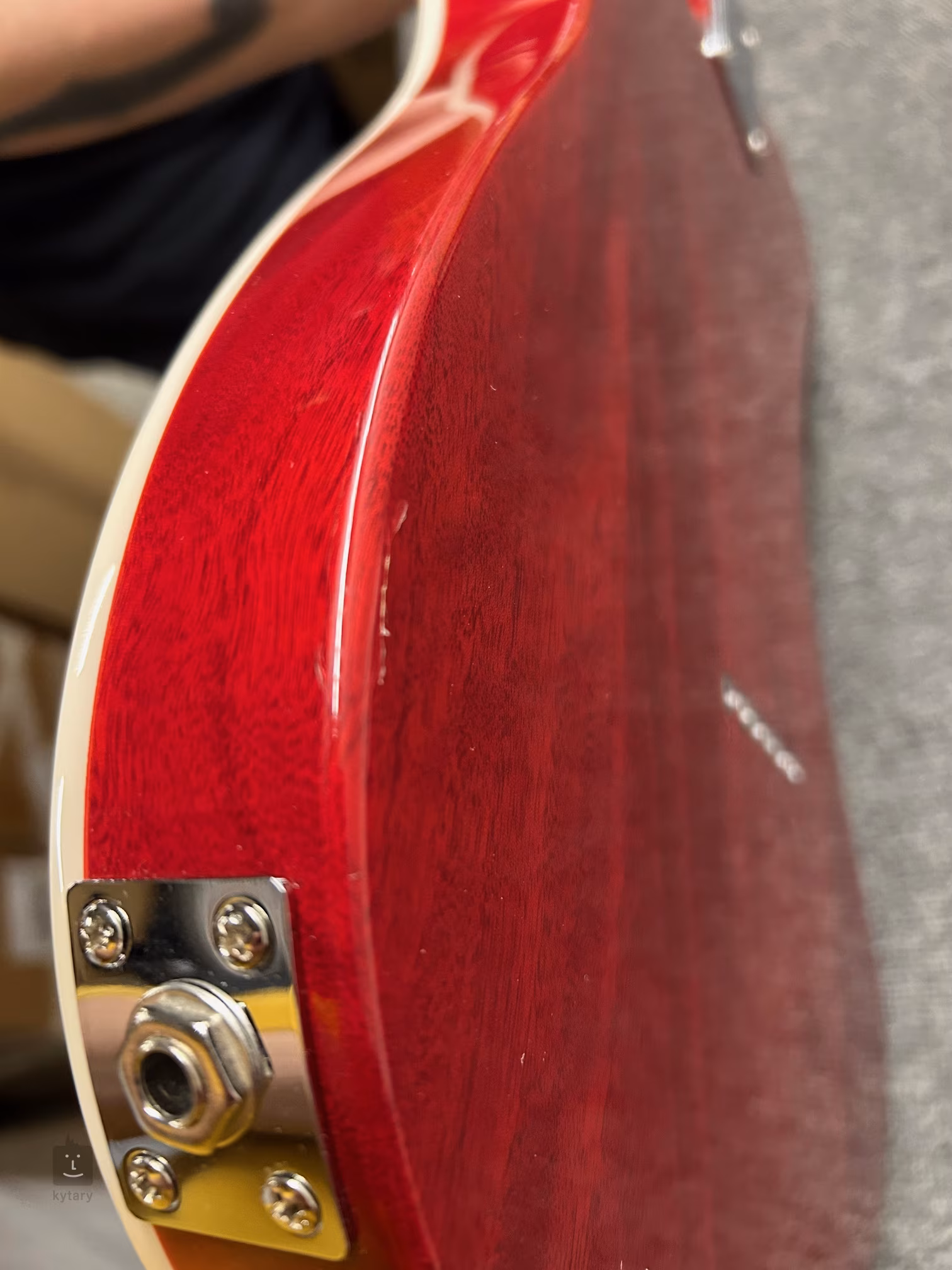 Oděrek v laku u výstupu jacka (viz foto). Jinak je nástroj v pořádku a plně funkční.