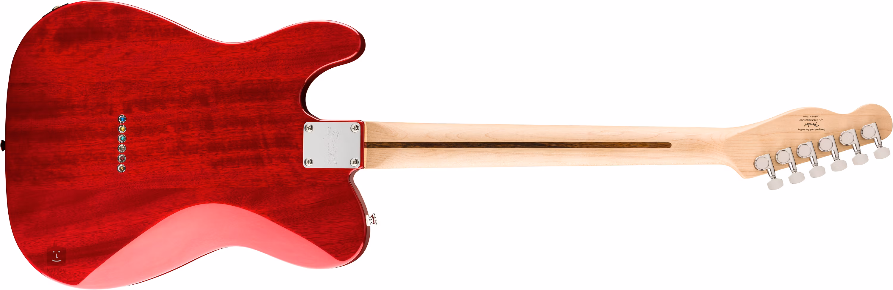 Kobylkový single-coil a krkový humbucker s keramickými magnety poskytují kytaře jak klasický “twang” Telecasteru, tak i plnější zvuk humbuckeru. Struny jsou ukotveny ve firemních chromovaných die-cast ladicích mechanikách a přes Tele kobylku s ocelovými sedly skrze tělo kytary. Stylové zpracování podtrhuje třívrstvý bílý pickguard.