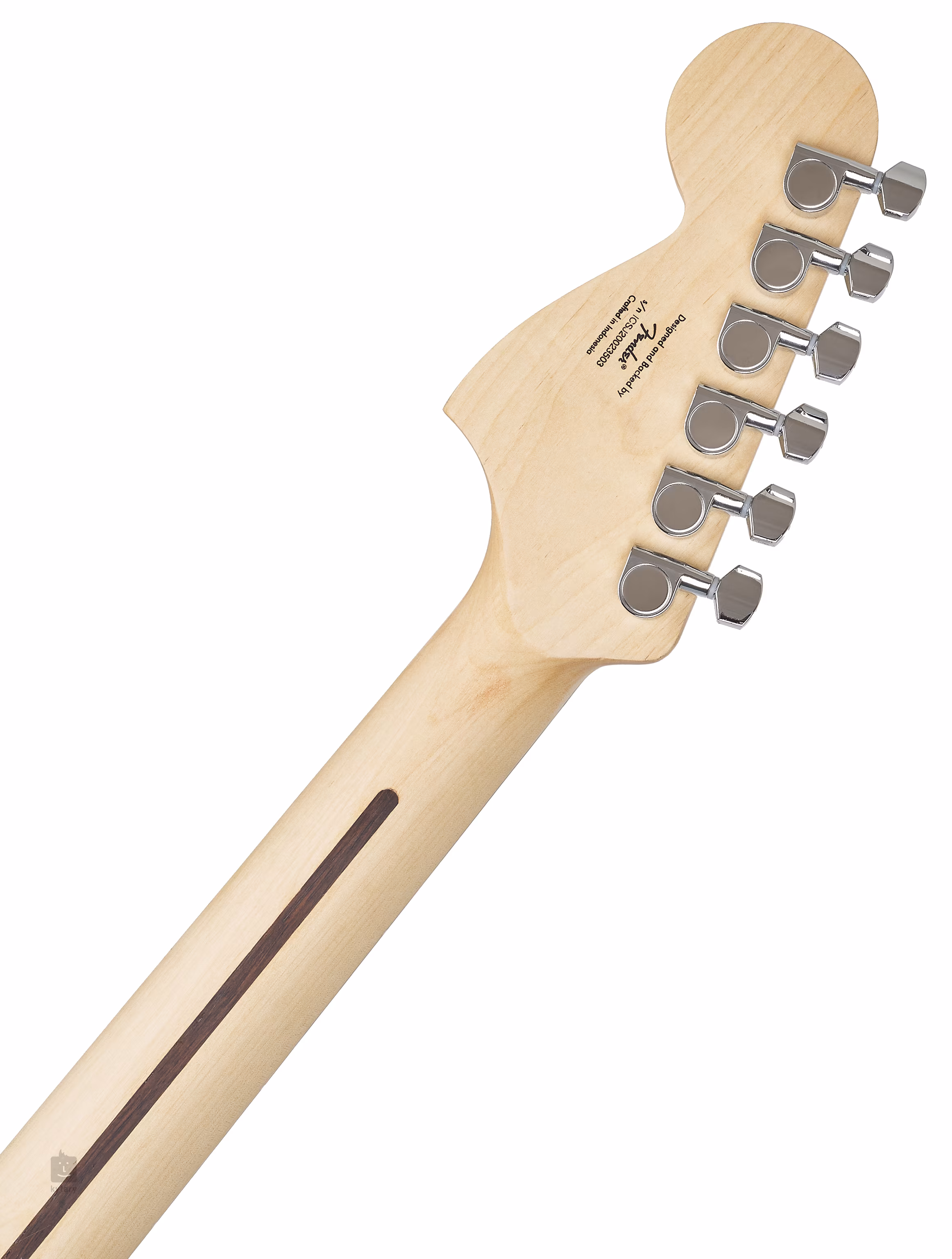 Topolové tělo nástroje kryje lesklý polyuretanový lak. Hmatník z fíkovníku (Indian Laurel) je osazen dvaadvaceti pražci velikosti Medium jumbo, orientaci po jeho ploše usnadňují bílé polohové značky. Struny jsou uchyceny ve firemních chromovaných Die-Cast mechanikách a pevné kobylce. Stylové zpracování podtrhuje typický tvar Fender hlavice s logem Squier a jednovrstvý bílý pickguard.