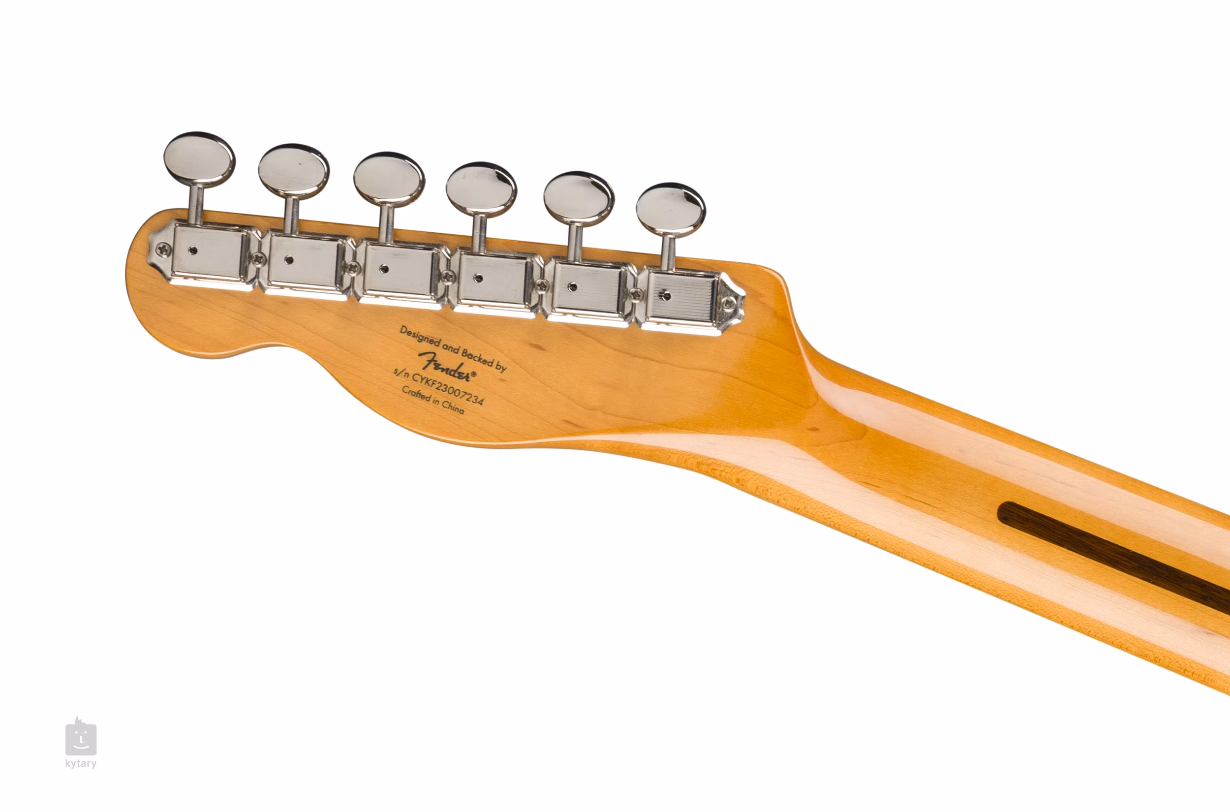 Kobylkový single-coil a krkový humbucker s Alnico magnety poskytují kytaře jak klasický “twang” Telecasteru, tak i vřelý plný zvuk humbuckeru. Kontury zvuku upravíte pomocí potenciometrů hlasitosti, tónové clony a třípolohového přepínače snímačů. Struny jsou uchyceny ve firemních ladicích mechanikách ve vintage stylu a přes kobylku se sedly z Mustanga v tremolu Bigsby B50. Stylové zpracování podtrhuje niklový hardware a třívrstvý pickguard (Parchment).