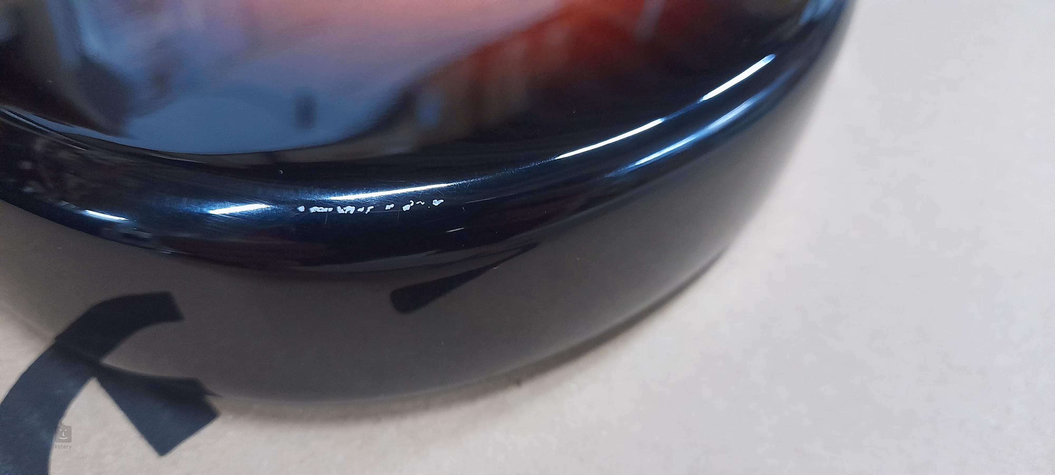 Poškozené zboží - odřený lak na hraně na spodní straně (viz foto).