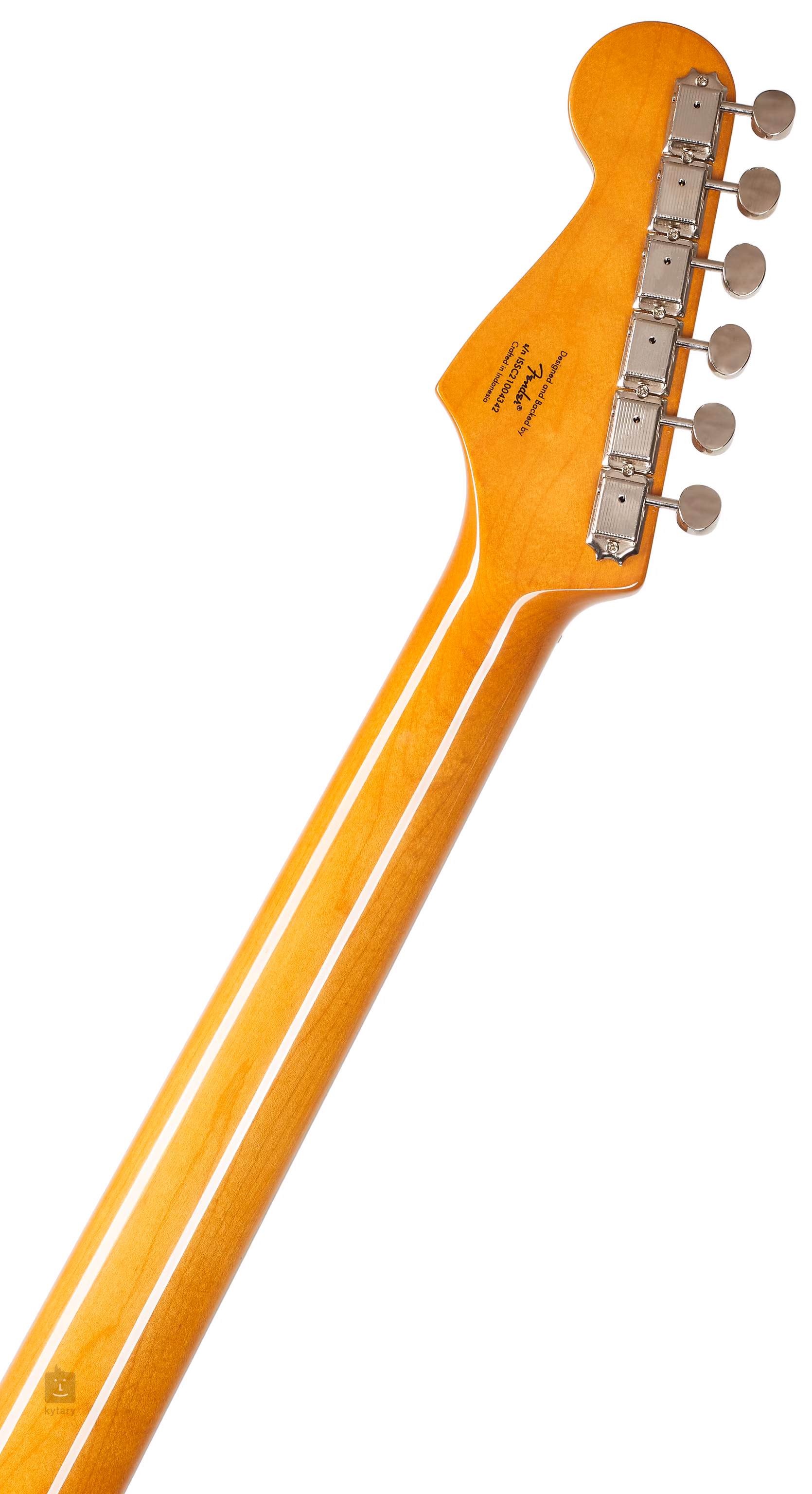Struny jsou uchyceny ve firemních mechanikách ve vintage stylu a v synchronizovaném tremolu. Stylové zpracování podtrhuje niklový hardware, světlý třívrstvý pickguard a firemní logo na hlavici kytary.