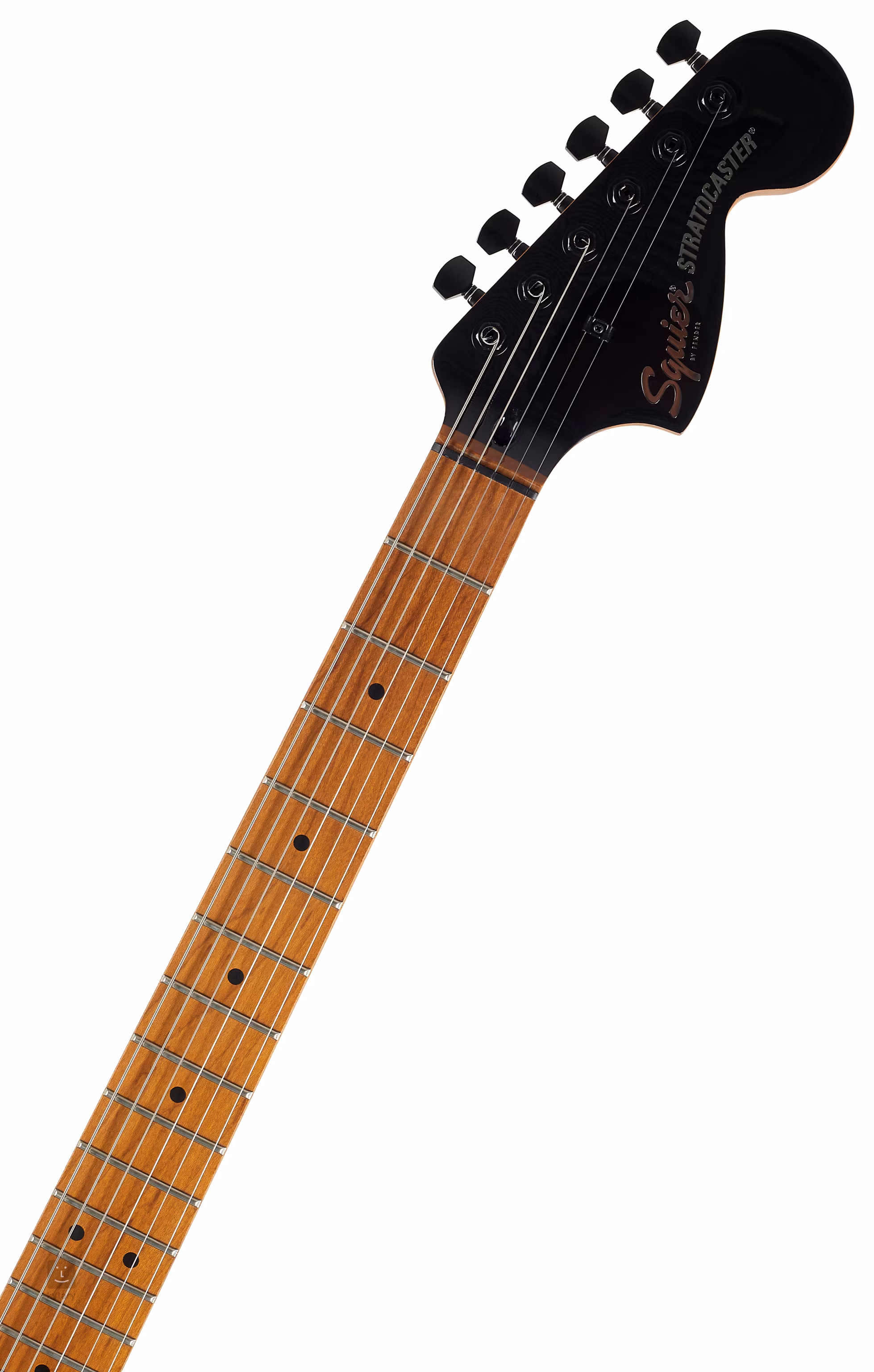 Tři single-coil snímače Squier SQR s Alnico magnety, ve speciální konfiguraci s prostředním snímačem umístěným těsně ke kobylkovému, nabízí širokou paletu zvuků a zvukových nastavení. Struny jsou ukotveny ve firemních Die-Cast mechanikách a v synchronizovaném tremolu s dvoubodovým uchycením. Stylový vzhled podtrhují detaily v podobě černého hardware, černého pickguardu nebo nabarvené hlavice.
